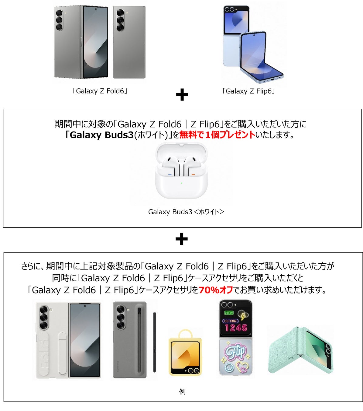 ~ SamsungオンラインショップでGalaxy折りたたみAIフォンやウェアラブルが最大40%オフ!さらに先着順でGalaxy Buds3などが無料で貰えるキャンペーンも! ~
