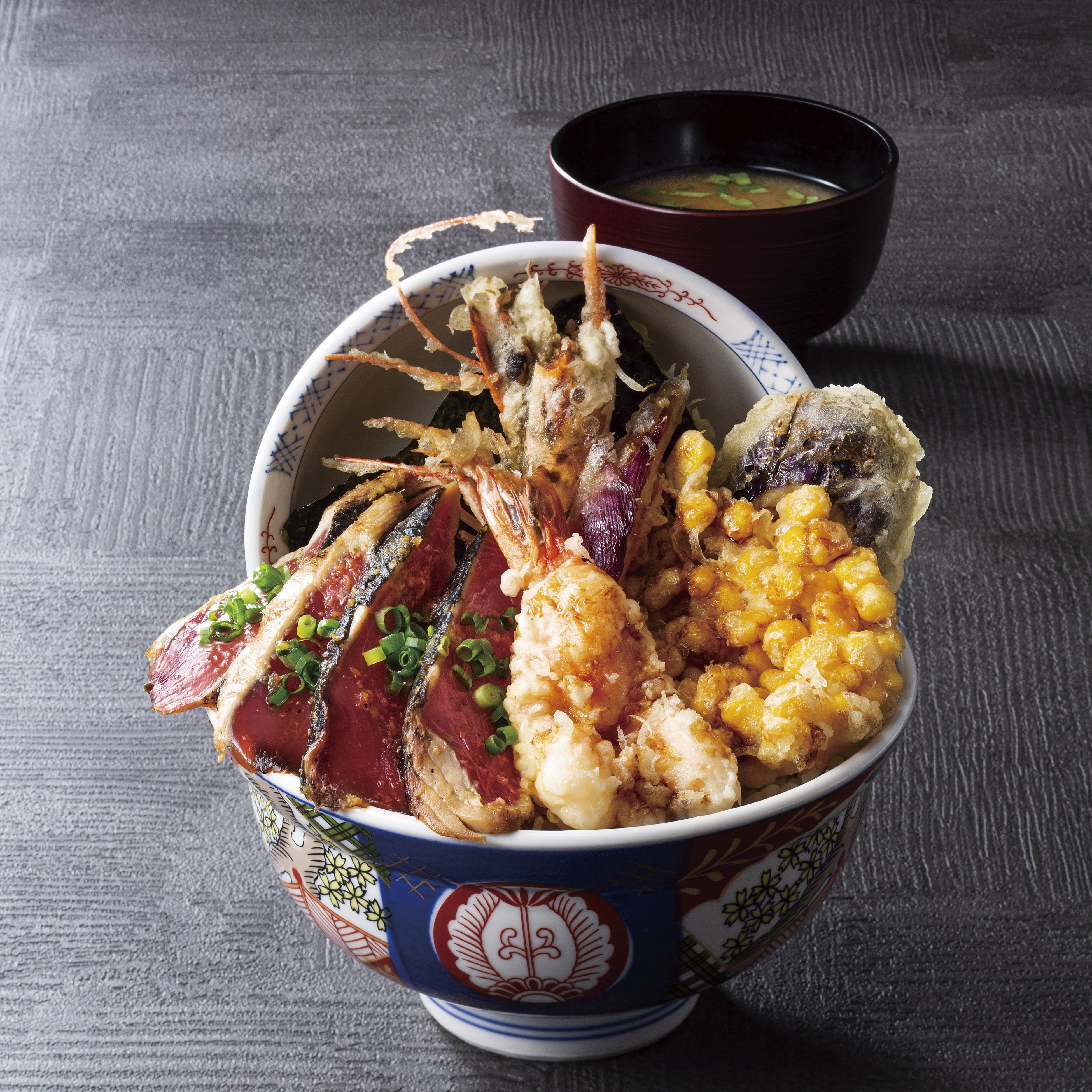 - 鰹のたたきと夏野菜で季節の天丼に