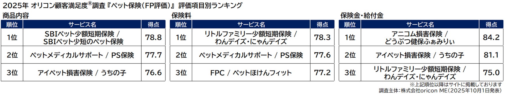 『ペット保険』︓【SBIペット少額短期保険 / SBIペット少短のペット保険】が初の総合1位 「商品内容」で1位に