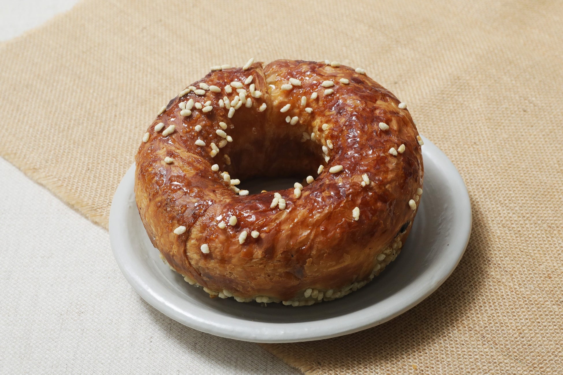 トッピングにお米のあられを使用した、「にっぽん」を感じていただけるチョコリングです。しっとりとしたデニッシュ生地にチョコチップを入れ、お米のあられとザラメでカリッと仕上げました。