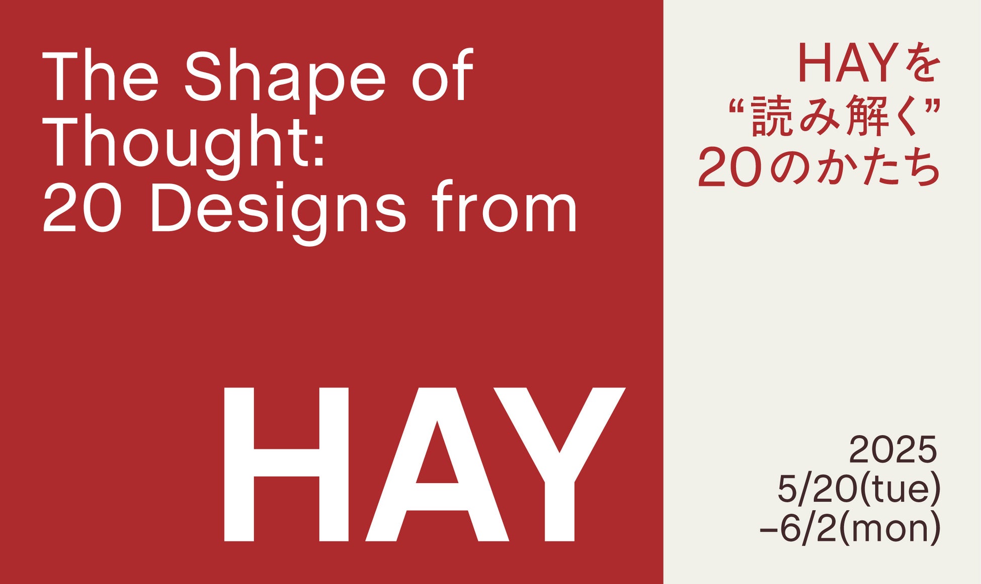 5月20日(火) - 6月2日(月)の期間中、東京・表参道にあるHAY TOKYOにて、企画展「The Shape of Thought: 20 Designs from HAY 〜HAYを“読み解く”20のかたち〜」を開催いたします。