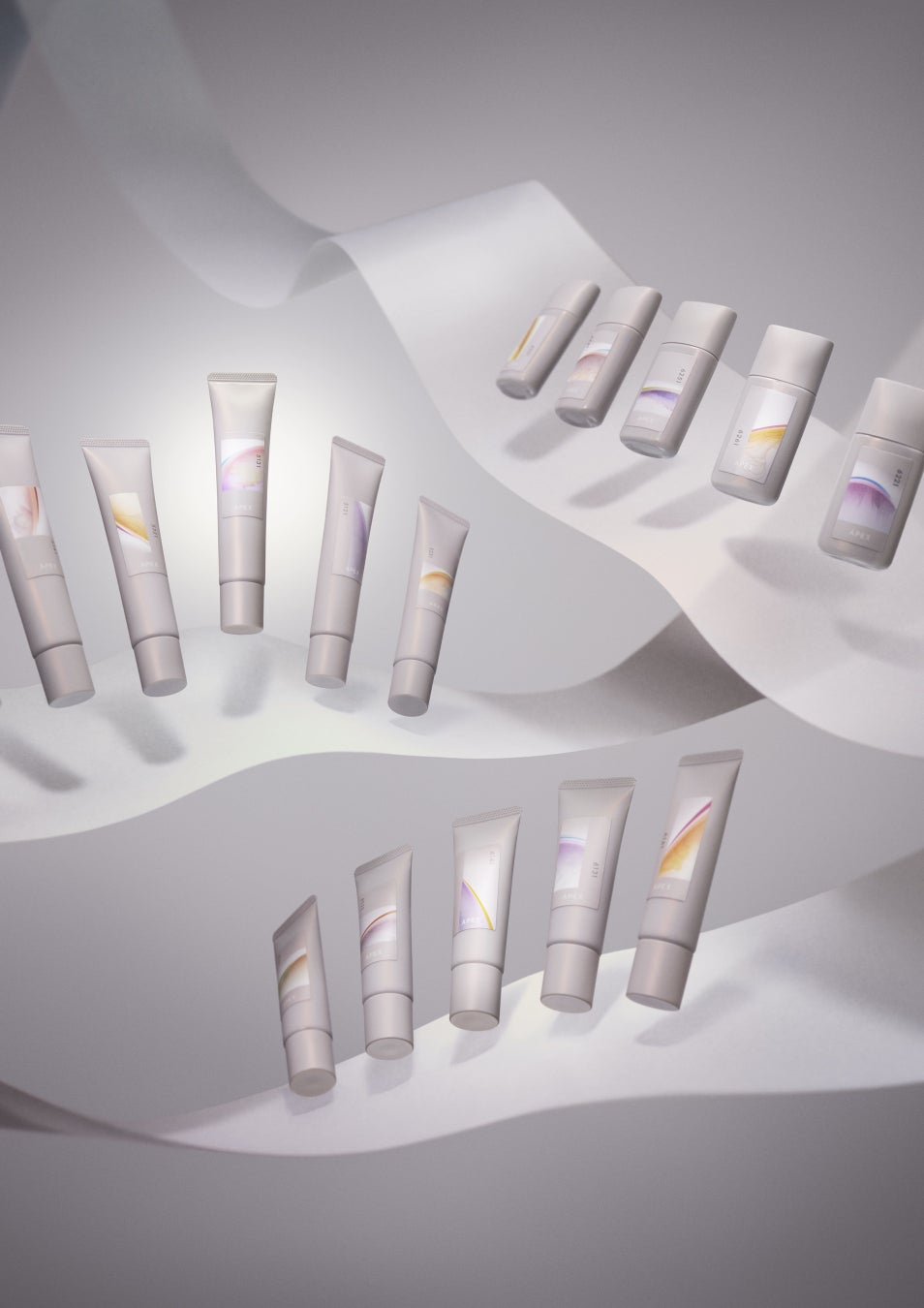 肌分析により一人ひとりの肌個性を見極め、カバーすべき要素をカバー。覆い隠して自分らしさを塗りつぶすのではなく、生まれ持った素肌の魅力を引き立て、肌個性に合わせて丁寧にカバーしながら素肌のような自然な仕上がり。肌悩みが違っても、まるで肌質が変わったかのような透明感※1のあるつるんと肌を。APEXのベースメークは、揺らがない選択という喜びと、肌と過ごす時間をもっと楽しく、愛おしくすることを目指します。