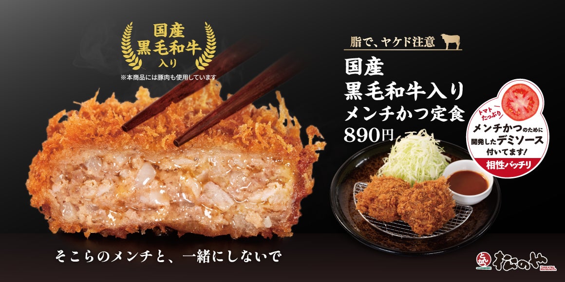 【松のや】日常にちょびっと贅沢を 「国産 黒毛和牛入りメンチかつ」新発売!