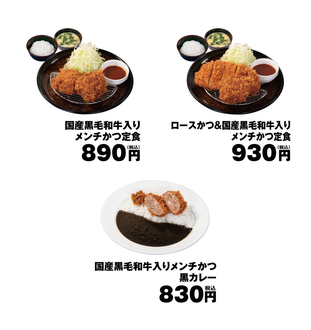 ※「国産黒毛和牛入りメンチかつ黒カレー」は松屋松のや併設店、松のやマイカリー併