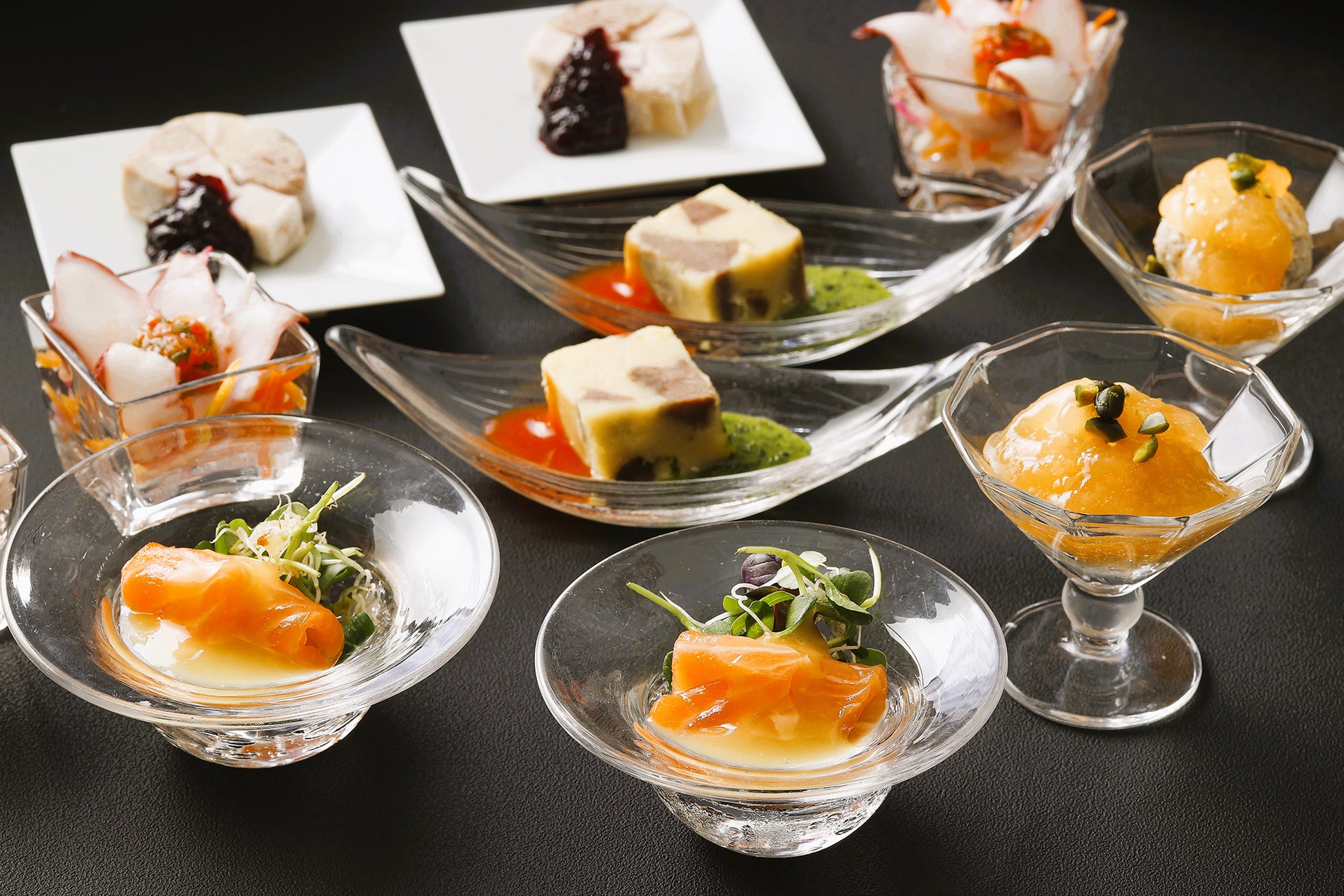 冷前菜には、浜茹でされた石狩産水蛸を使用したカルパッチョや、上品な脂と濃厚な甘みが特徴の石狩産サクラマスのマリネなどをラインナップ。