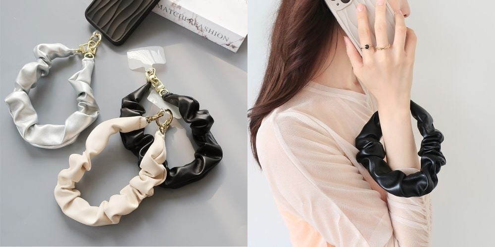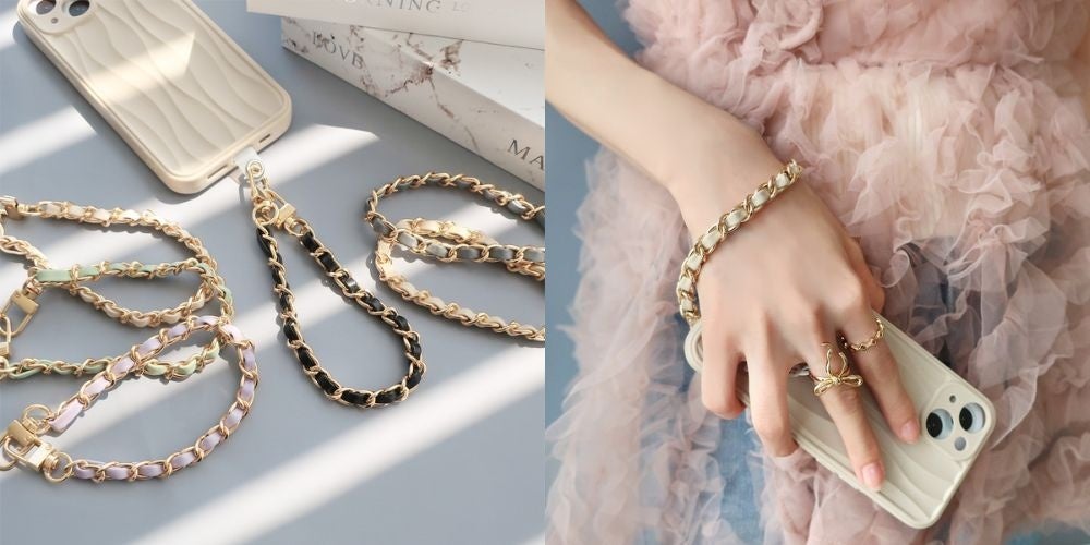 くしゅっとしたデザインやチェーンデザインのスマホストラップ。