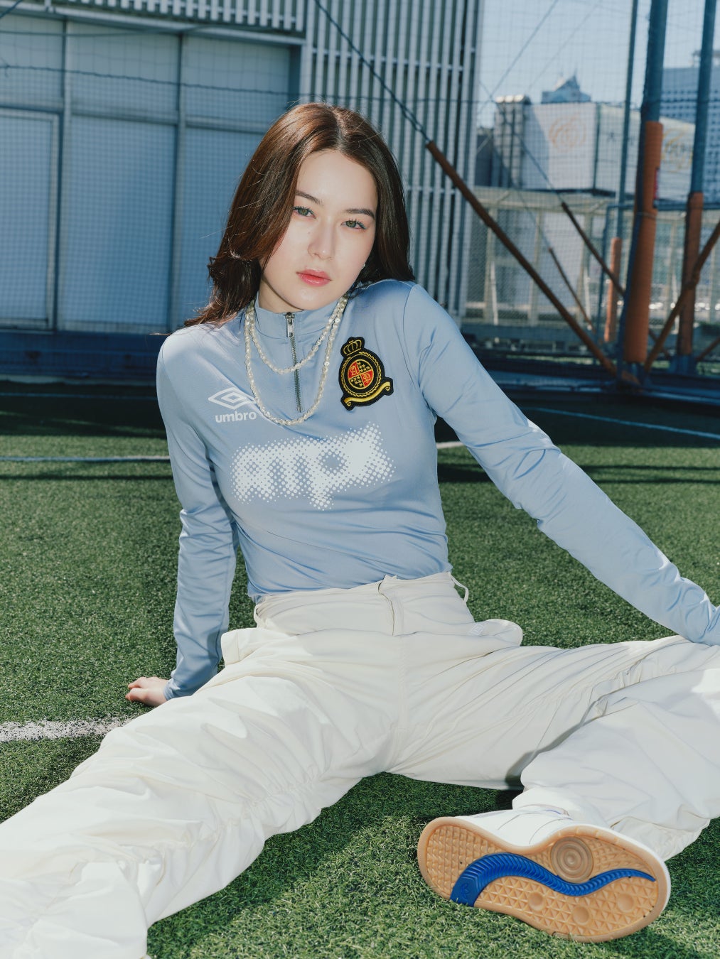 本コラボレーションはumbroの特色であるスポーティー要素と、「Pinks street」をコンセプトに掲げ、女性の為のストリートスタイルを提案するatmos pinkのトレンド感あふれるデザインが融合し、流行のスポーツミックススタイルが叶うアイテムを展開いたします。