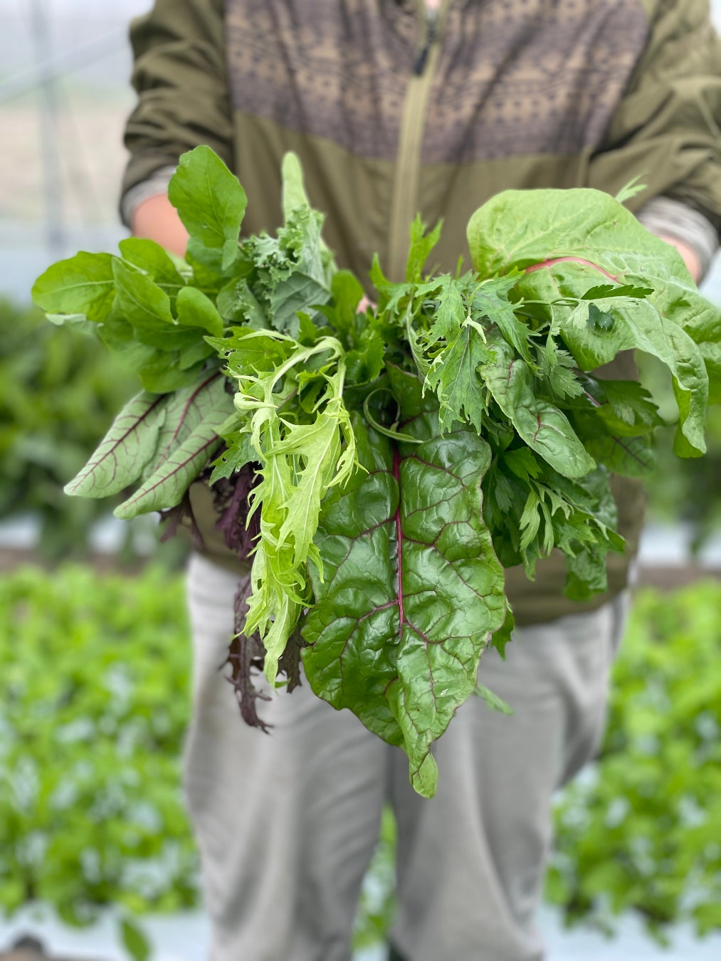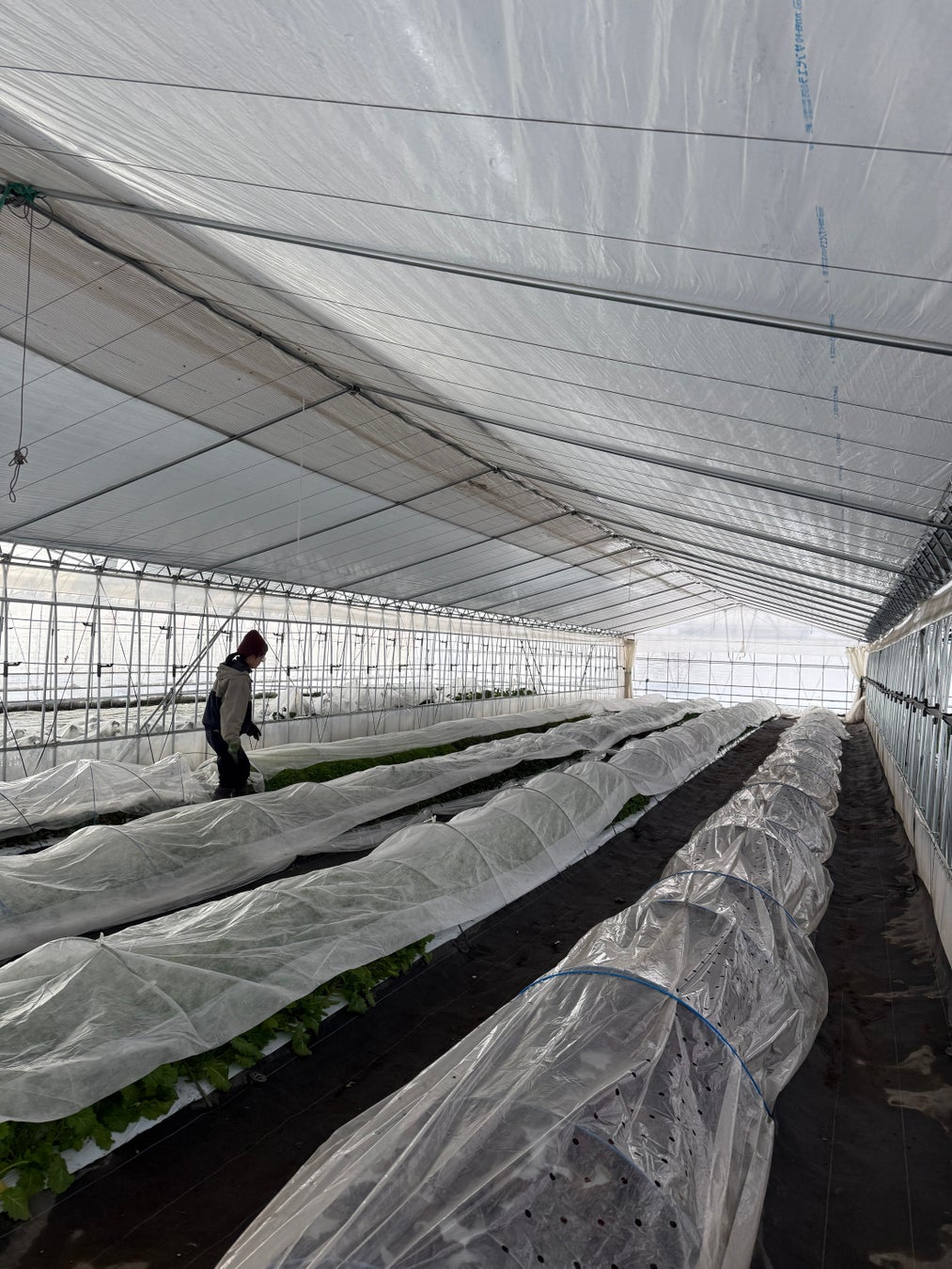 長野県安曇野市の穂高温泉郷に位置するリゾートホテル「休暇村リトリート安曇野ホテル」(所在地:長野県安曇野市穂高有明7682-4、支配人:渡邊康広)では、冬季は寒さの影響で地元産野菜の仕入れが難しくなる中、通年で新鮮な葉野菜を栽培する地元農家「FARM SANKICH!(ファームサンキチ)」からの仕入れを開始しました。薪ストーブで温度管理されたハウスで育つ野菜は、外気温が氷点下に下がる中でも青々とした生命力にあふれ、力強い味わいが特徴です。