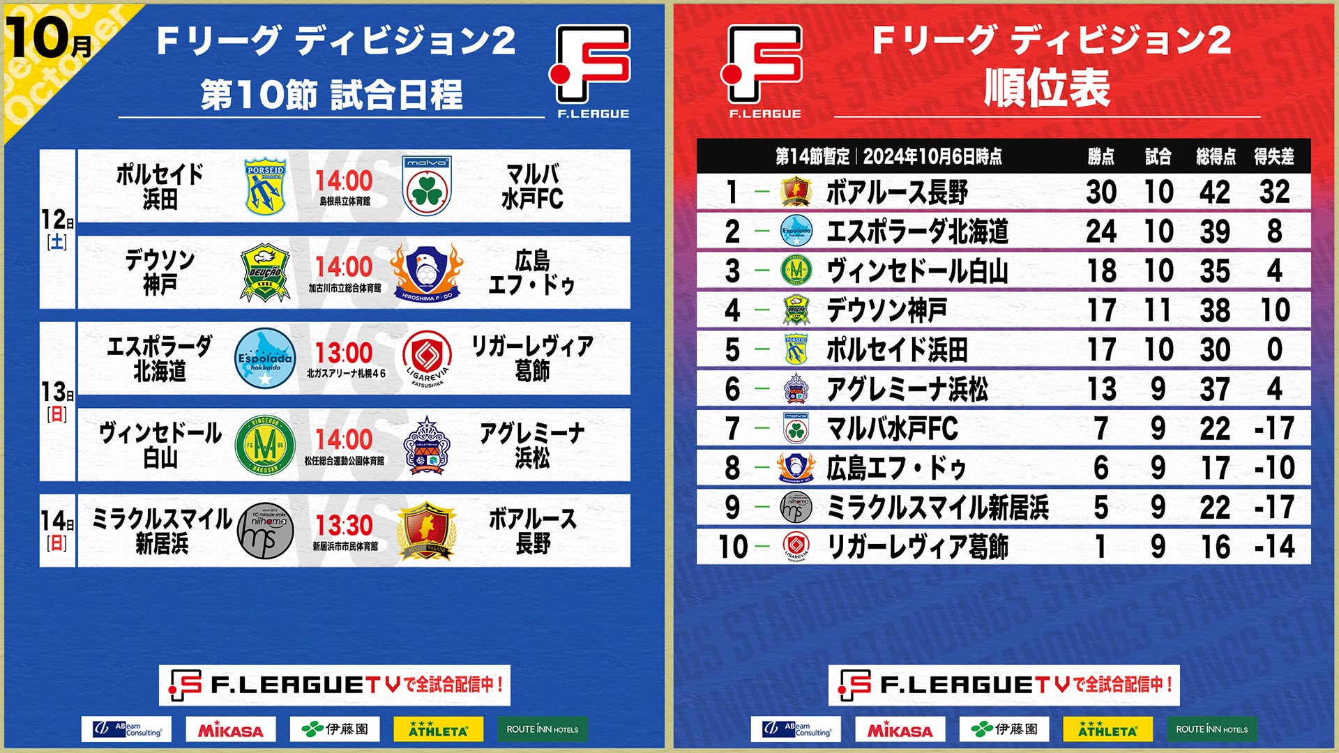 【F2第10節|10月12日〜14日 試合情報】会場情報/チケット情報/注目ポイントは?【Fリーグ2024-2025 ディビジョン2】今こそ最高のフットサルを