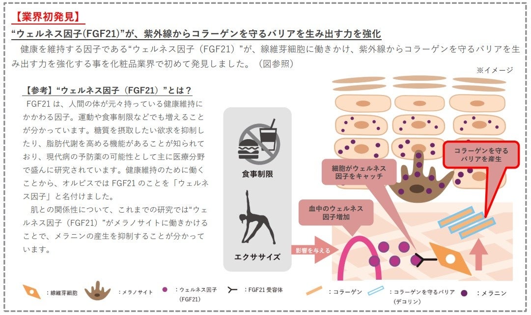 ※3 FGF21 は、糖質を摂取したい欲求を抑制したり、脂肪代謝を高める機能があるなど、健康維持のために働くこと から、オルビスでは「ウェルネス因子」と名付けました
