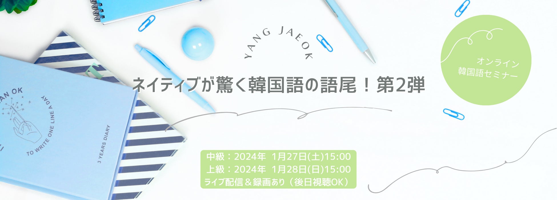 プレミアム韓国語講師ヤン先生のオンライン韓国語セミナー「ネイティブが驚く韓国語の語尾24選」