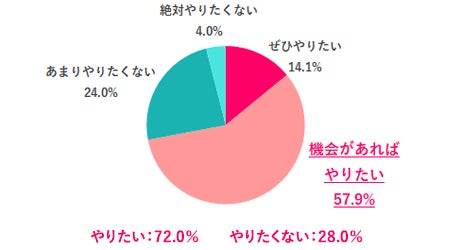 今後スポットワークをやりたいかという質問には、「ぜひやりたい」「機会があればやりたい」のやりたい派が72.0%だったのに対し、「あまりやりたくない」「絶対やりたくない」のやりたくない派が28.0%とやりたくない派を大きく上回る結果となりました。