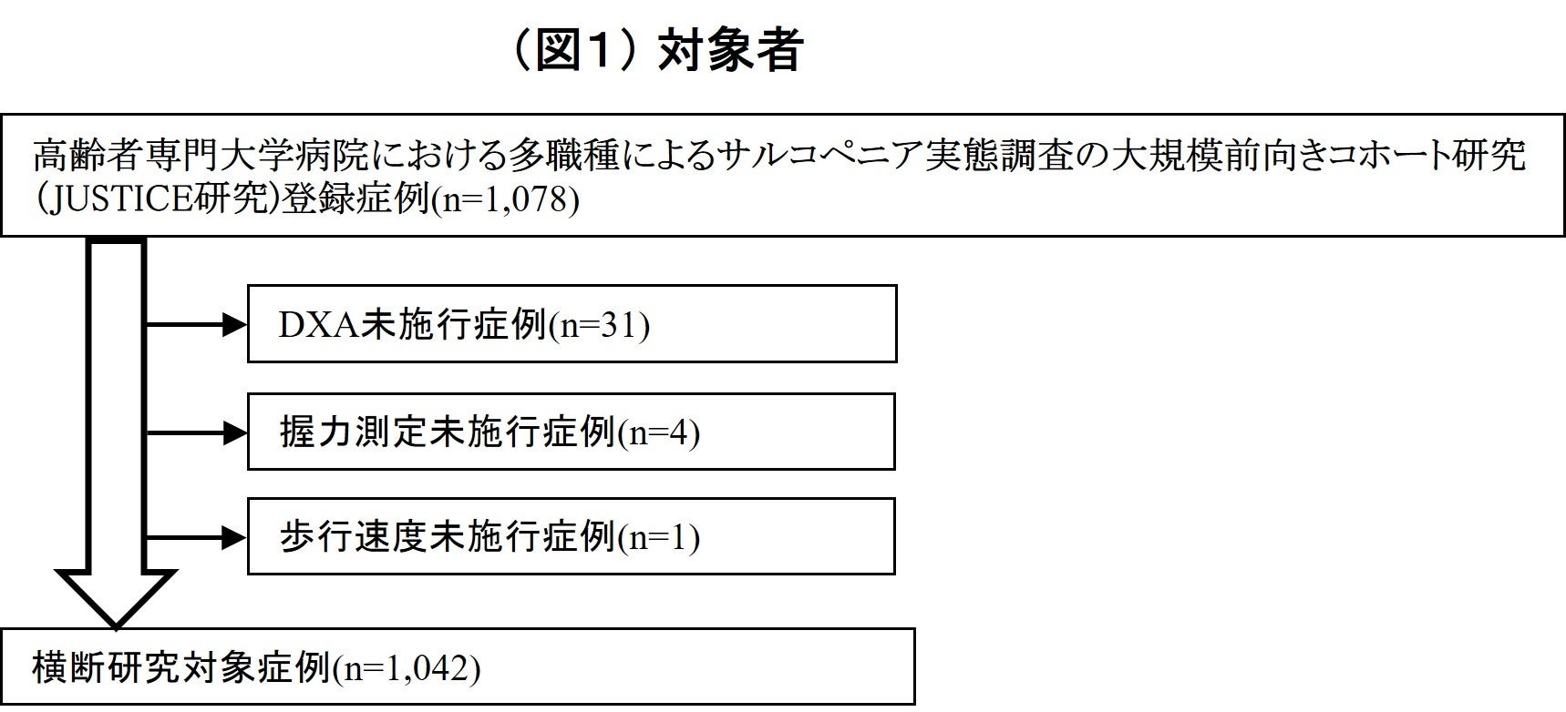 ●試験デザイン:横断研究(高齢者専門大学病院における多職種によるサルコペニア実態調査の大規模前向きコホート研究(JUSTICE研究)の登録時データを使用)