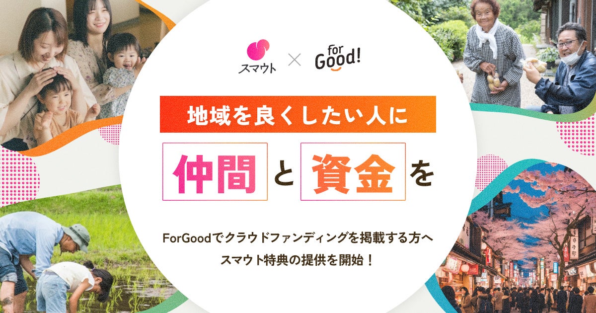 ForGoodは、地域や社会をより良くしたいという想いを持つ人々の挑戦を、クラウドファンディングを通じて応援してきました。 挑戦する人と支援する人がつながることで、社会にあたたかな変化が生まれていく、そんな循環を広げたいと考えています。 今回のスマウトさんとの連携は、「地域に関わりたい人」と「地域で挑戦する人」が出会い、共感から行動につながる新しいきっかけを生み出す取り組みです。