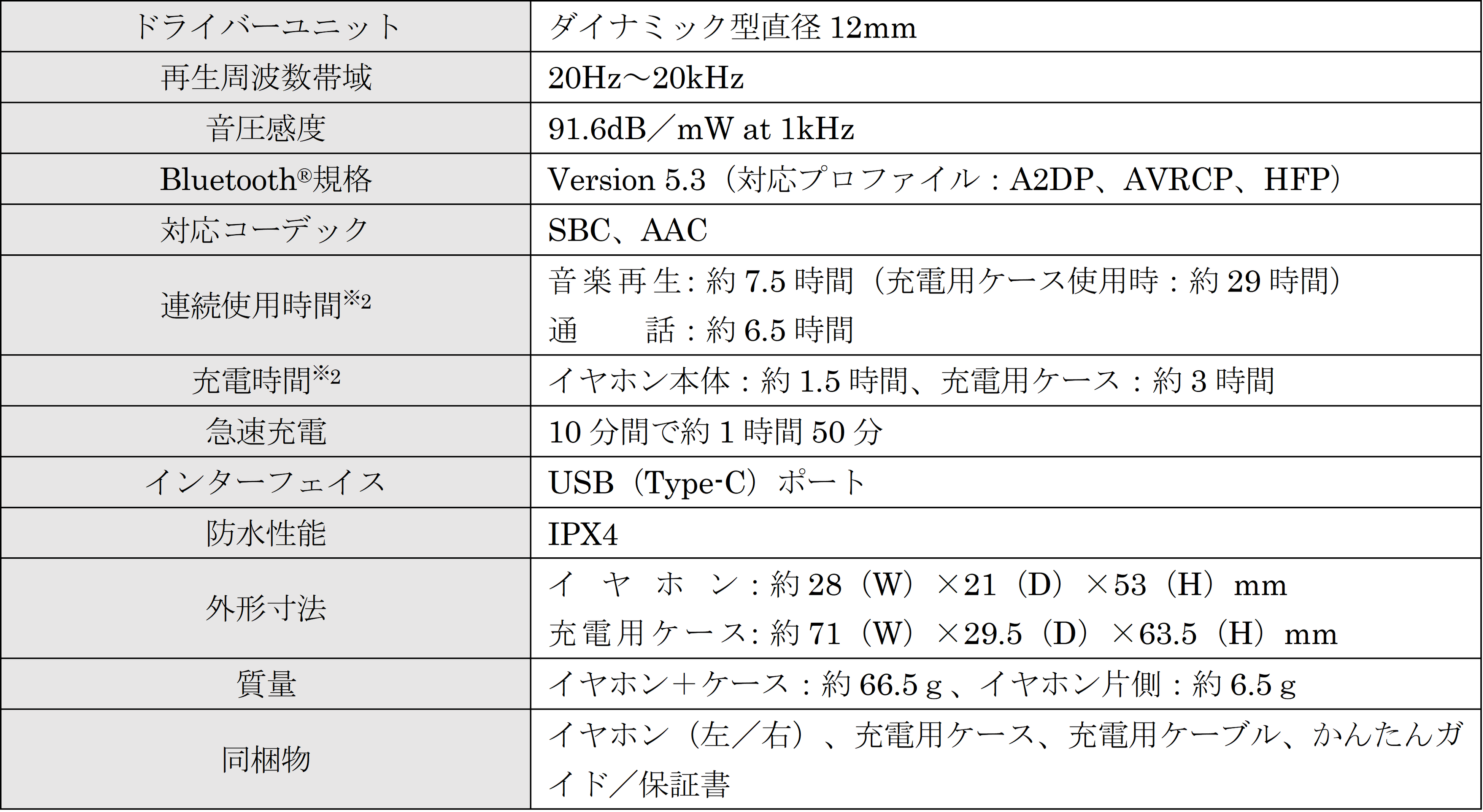 2台のデバイスと同時にBluetooth®接続できるマルチポイント機能や、相手にクリアな声を届ける通話時のノイズリダクション機能、連続再生約7.5時間の長時間再生など、ライフスタイルに寄り添う充実した機能の搭載と、手に取りやすい価格を両立させています。