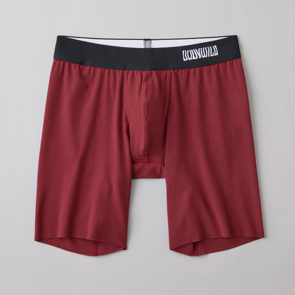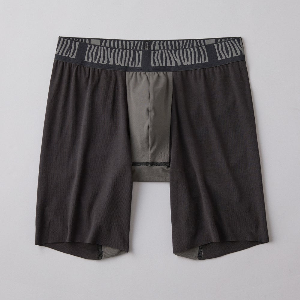 BODY WILDの着心地追求は細部を究め、快適性を担うディテールがプロダクトのデザインへ昇華。前マチ部分の仕様は縫い目を内側に隠す特殊な製法で、肌あたりを最小限に抑えました。また裾丈をロングにすることで、アウターパンツとのはりつき等、不快の原因となる太ももの汗をカバー。裾のずり上がりも軽減します。