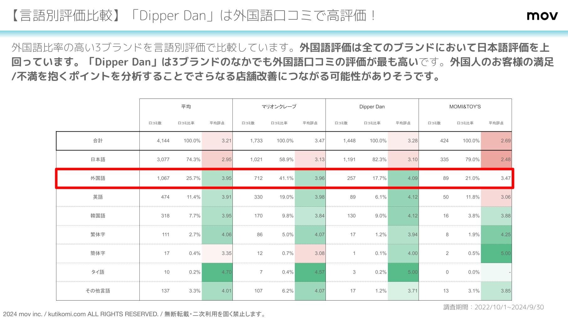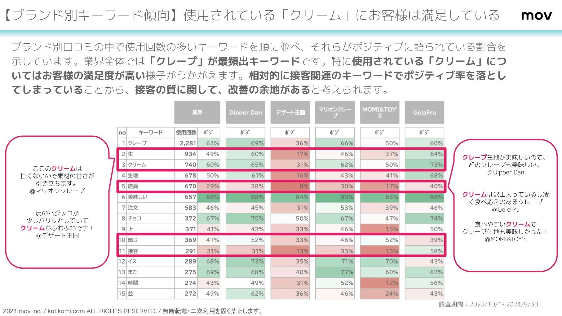 口コミ分析対象期間:2022年10月1日 〜 2024年9月30日