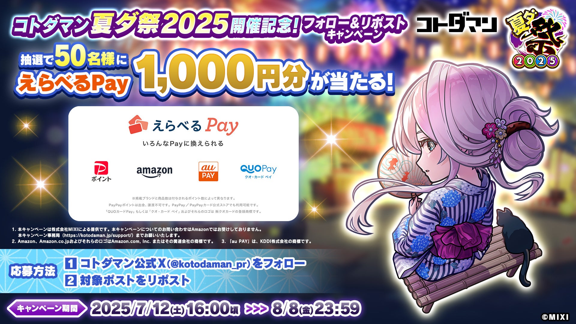 コトダマン夏ダ祭2025開催記念!フォロー&リポストキャンペーン |