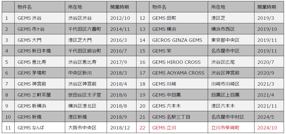1. 2024年10月11日に都市型商業施設「GEMS」22棟目の「GEMS立川」が開業