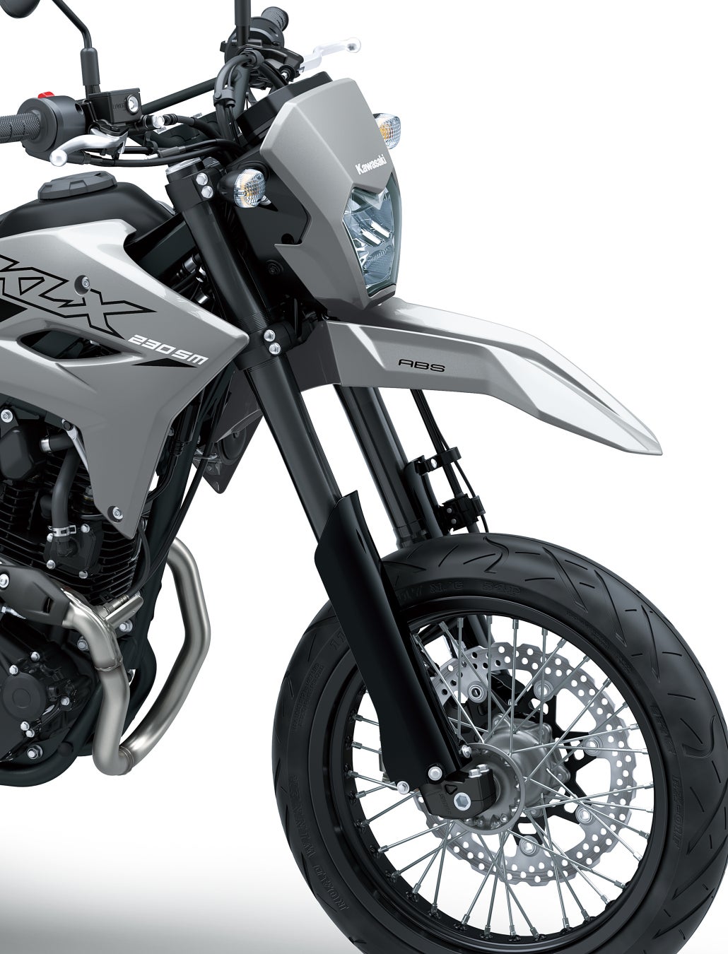 ワイルドな雰囲気とオフロードテイストを街で堪能する、KLX230SM。スーパーモトならではの楽しさに満ちています。