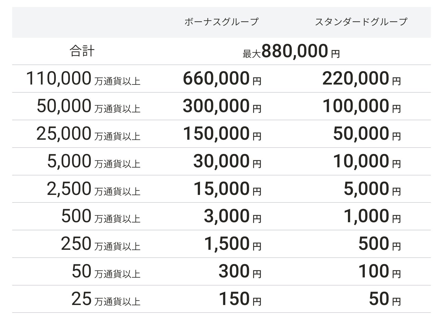 キャンペーン期間内に、本キャンペーンにエントリーし、「FXネオ」の新規建てのお取引をされた個人のお客様を対象に、取引数量に応じて最大合計88万円をキャッシュバックいたします。