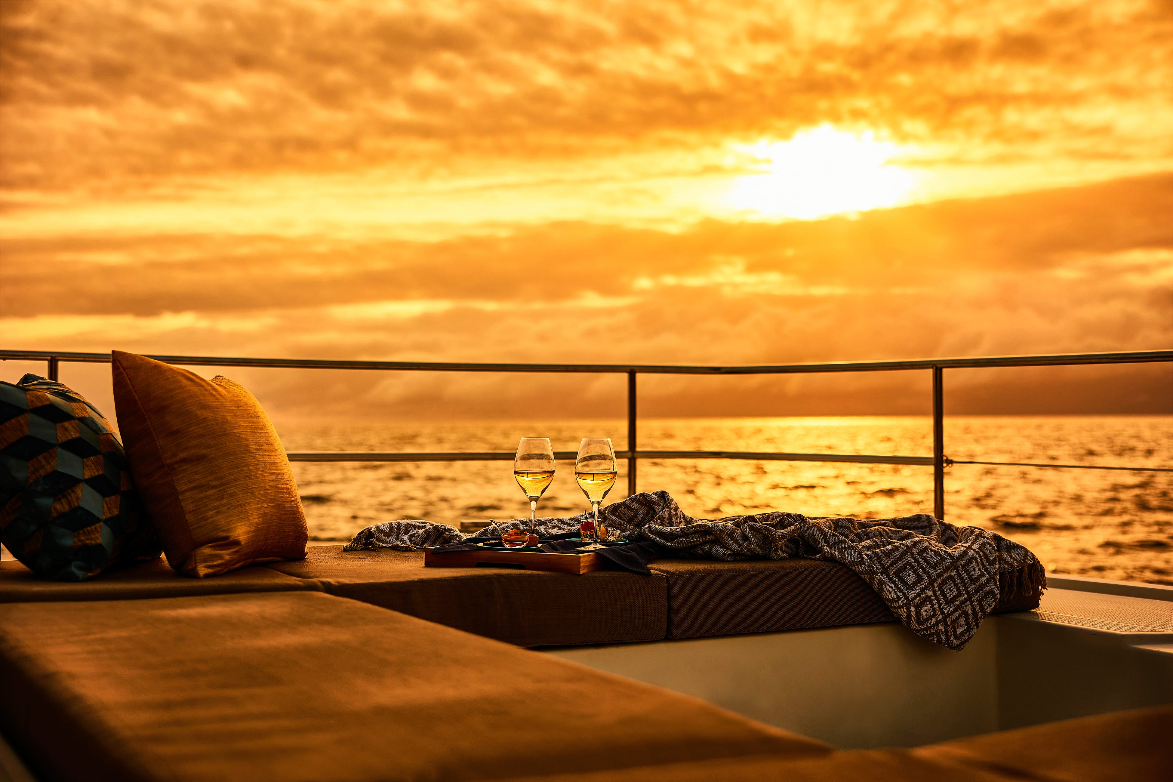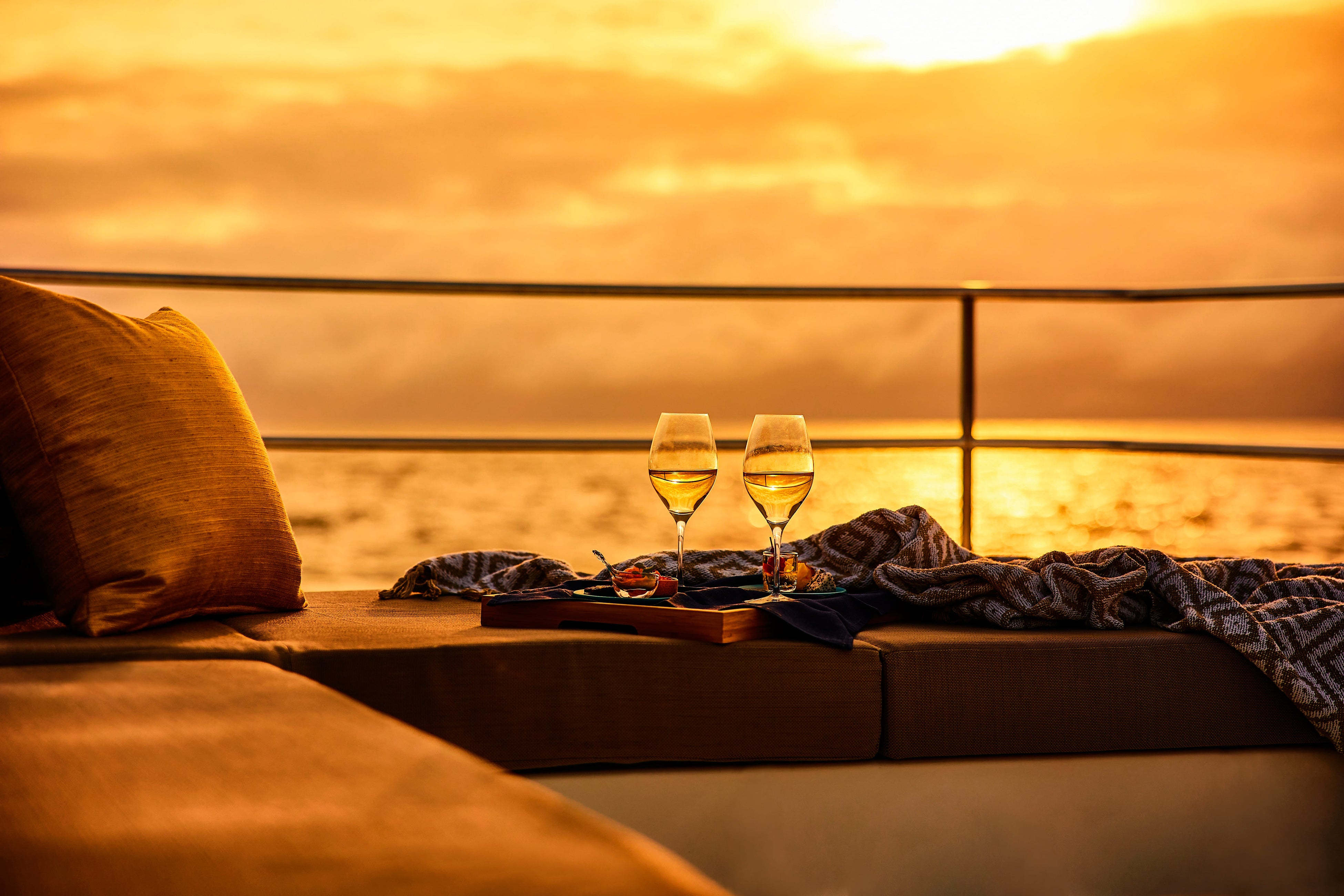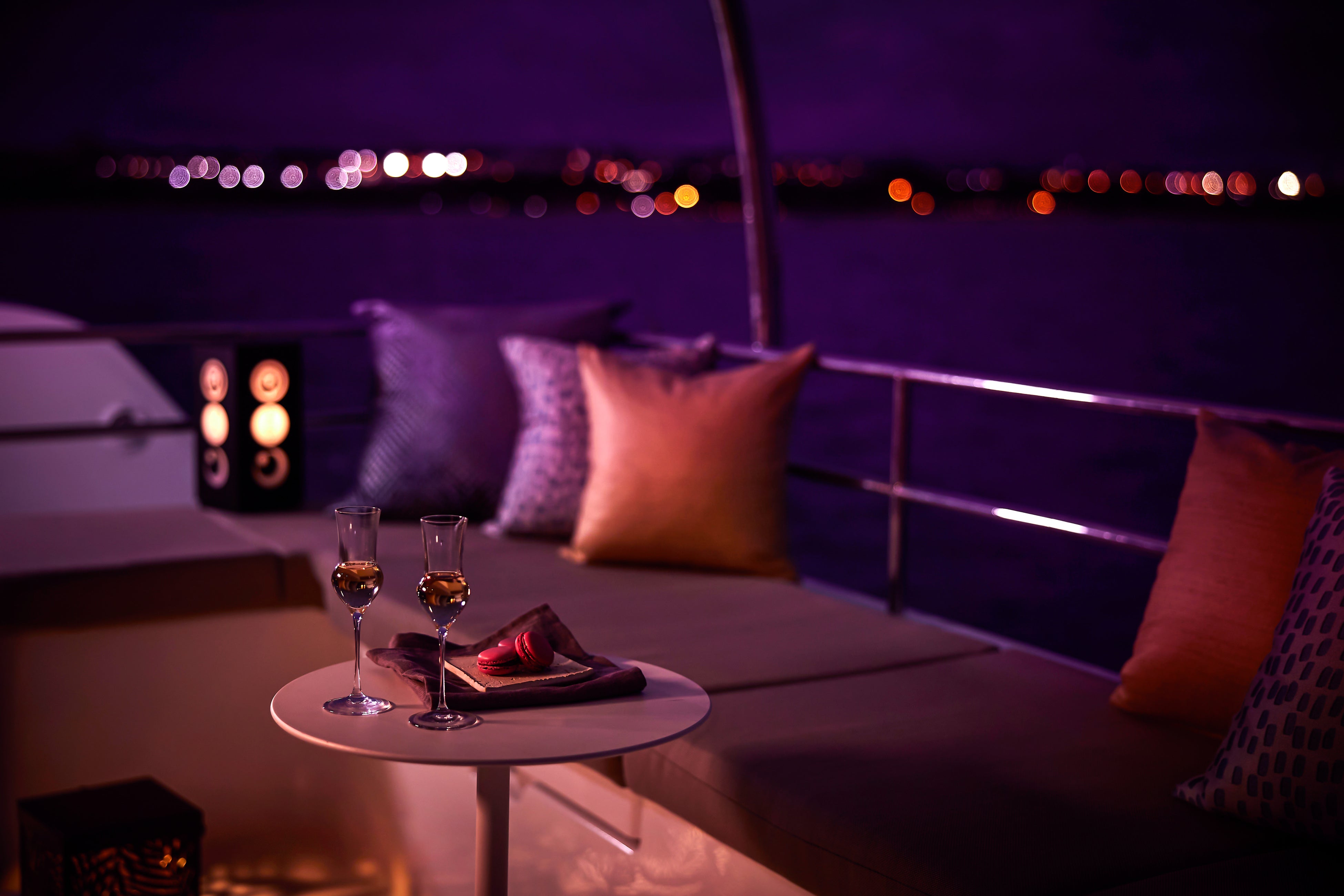 2 夕暮れの空の移ろいを眺める船上ディナー