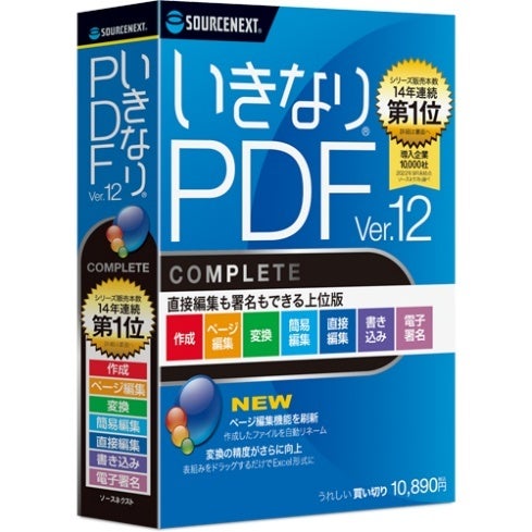 ソースネクスト株式会社(本社:東京都港区 代表取締役社長:小嶋 智彰)は、10月17日(水)に、弊社サイト上で、Windows用のPDF編集ソフト「いきなりPDF Ver.12 COMPLETE」(税込 10,890円)、「いきなりPDF Ver.12 STANDARD」(税込 4,290円)のダウンロード版を発売いたします。