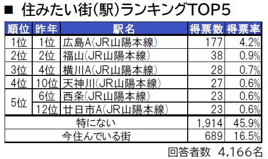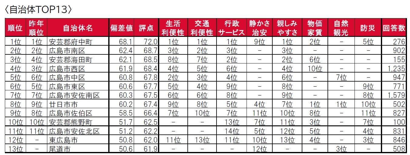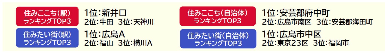 •住みたい街ランキングでは、行政区はまとめて一つの自治体として集計していますが、広島市は行政区を分けて集計しています。
