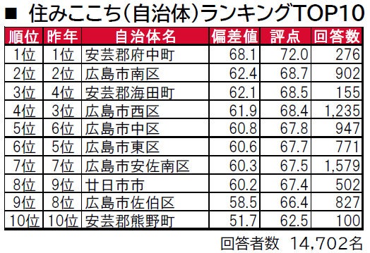 ■住みここち(自治体)トップは、4年連続で安芸郡府中町