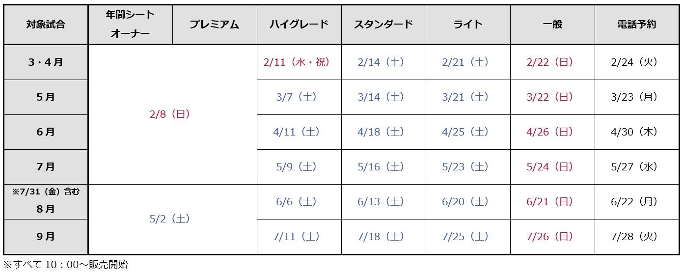 <2026シーズン チケット販売スケジュール 概要>