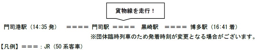 九州旅客鉄道株式会社(以下、JR九州)では、「貨物線を走行!50系客車で博多~門司港乗車旅」と「貨物線を走行!50系客車で門司港~博多乗車旅」のJR九州オリジナルツアーを発売いたします!