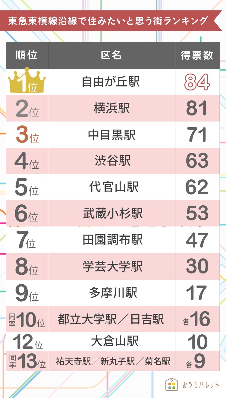 おうちパレット・東急東横線沿線で住みたいと思う街の調査