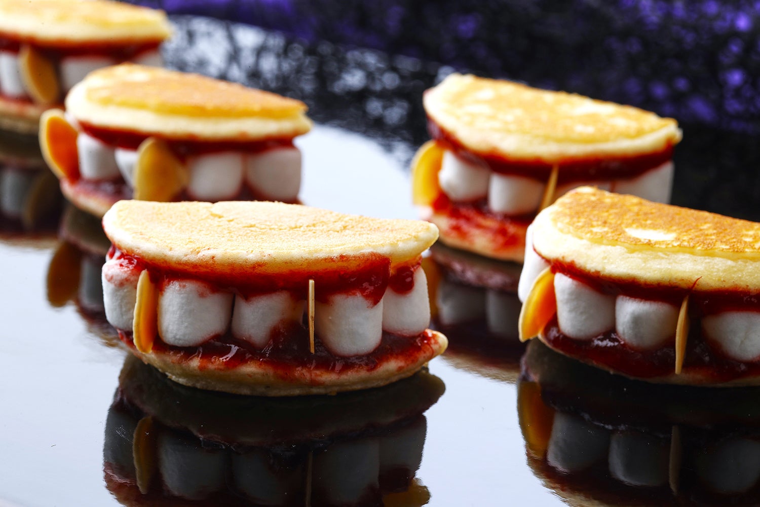 カスタマイズコーナーでは、パンケーキとジャム、マシュマロ、アーモンドをお席でご自身で組み立てていただくスイーツ、「ヴァンパイア ファングス(吸血鬼の牙)」が初登場。お子様にも簡単に組み立てることができ、ヴァンパイアになったかのようなハロウィンフォトの撮影もおすすめです。また、しぼりたての洋栗モンブランや巨峰のソフトクリーム、かぼちゃのチョコレートファウンテンなど、カスタマイズコーナーでも秋の味覚をお愉しみいただけます。