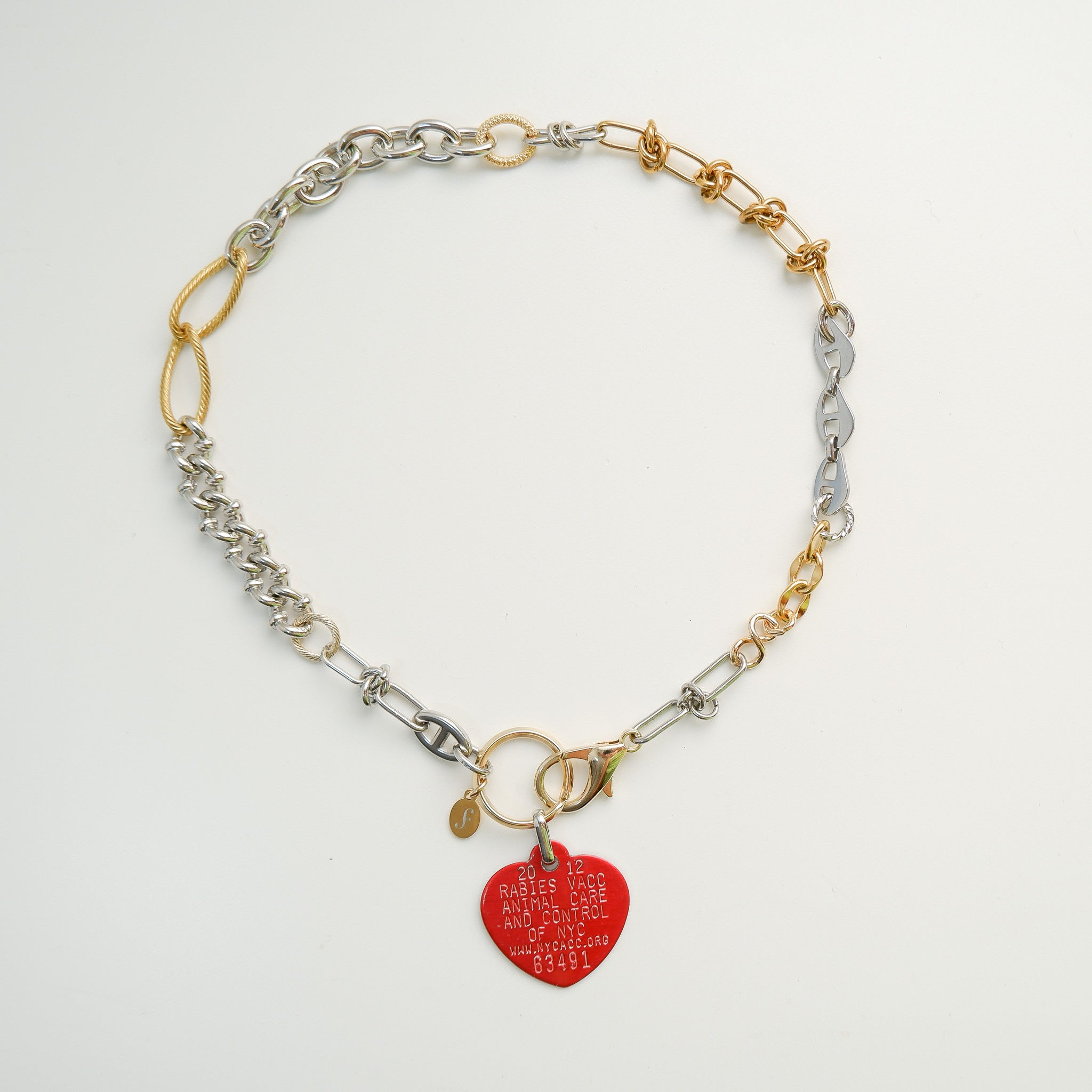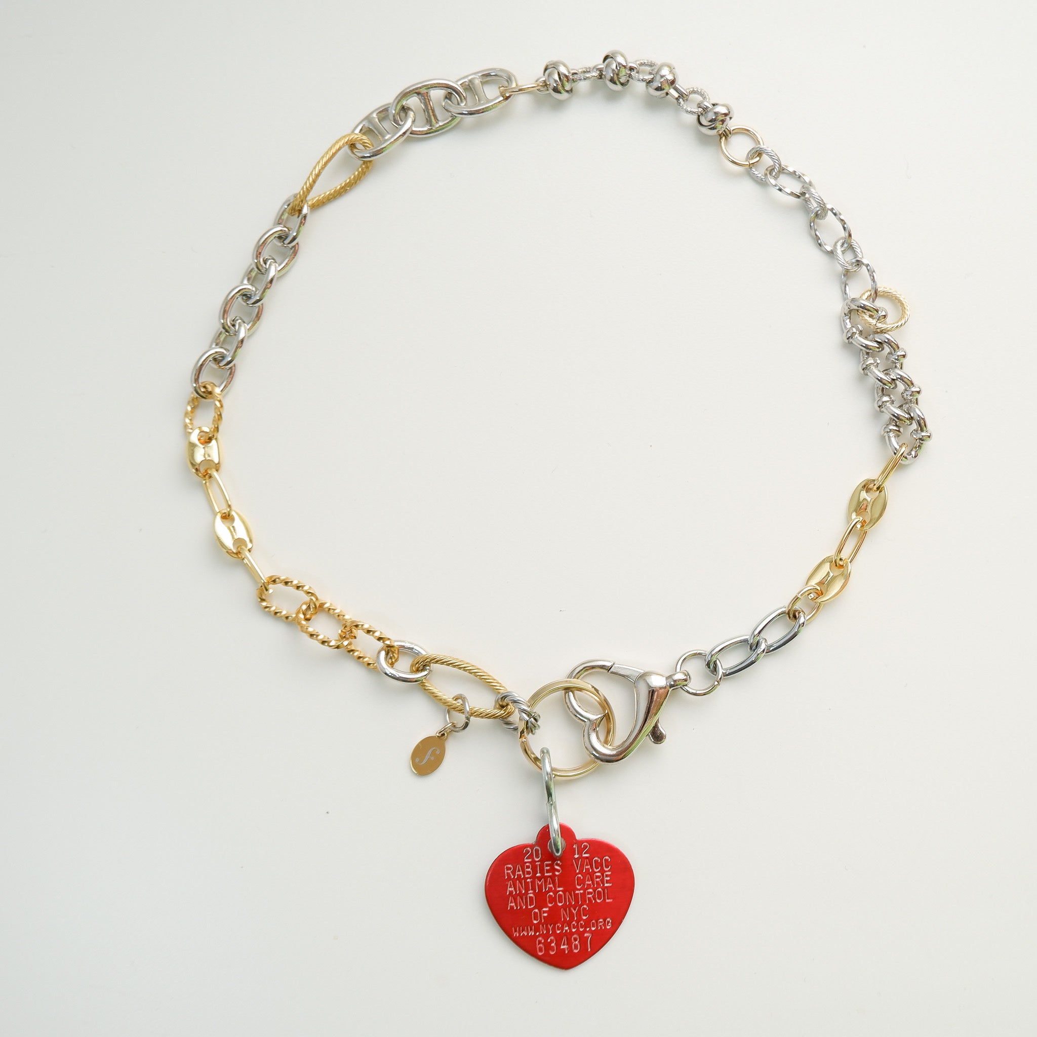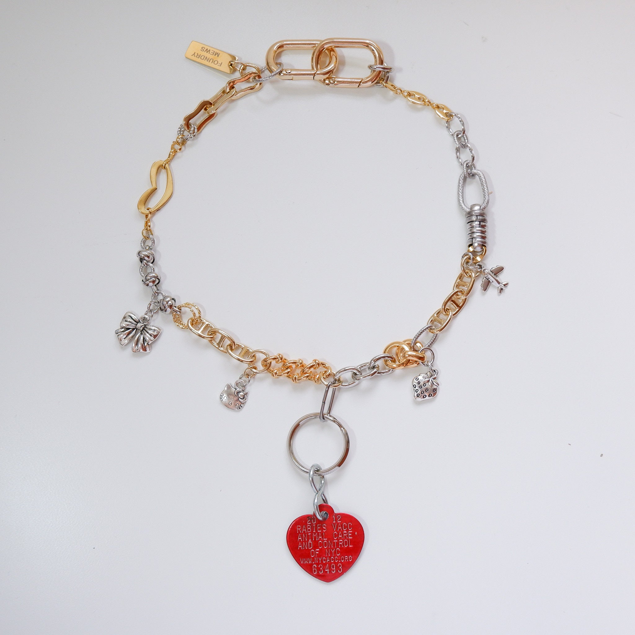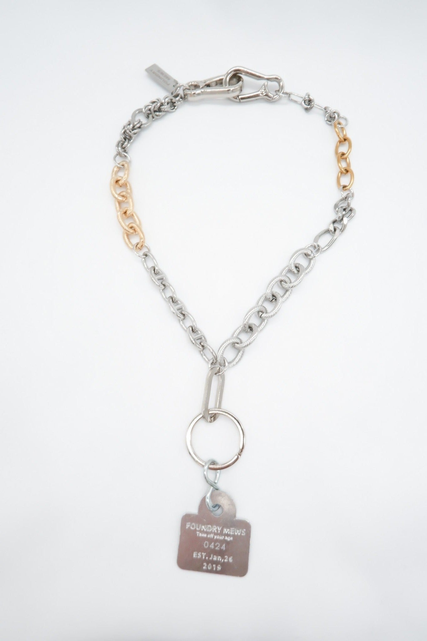 Foundry Mewsのネックレスシリーズの中でも1番人気のアイテム。ゴールドハート・シルバーハート・サークル・ノーマルの4型があり、どれも個性を際立たせ、どんなスタイルにでも合う存在感のあるアイテムです。またヴィンテージ感を出すため様々な種類の金属を組み合わせて、一つのネックレスを作り上げています。