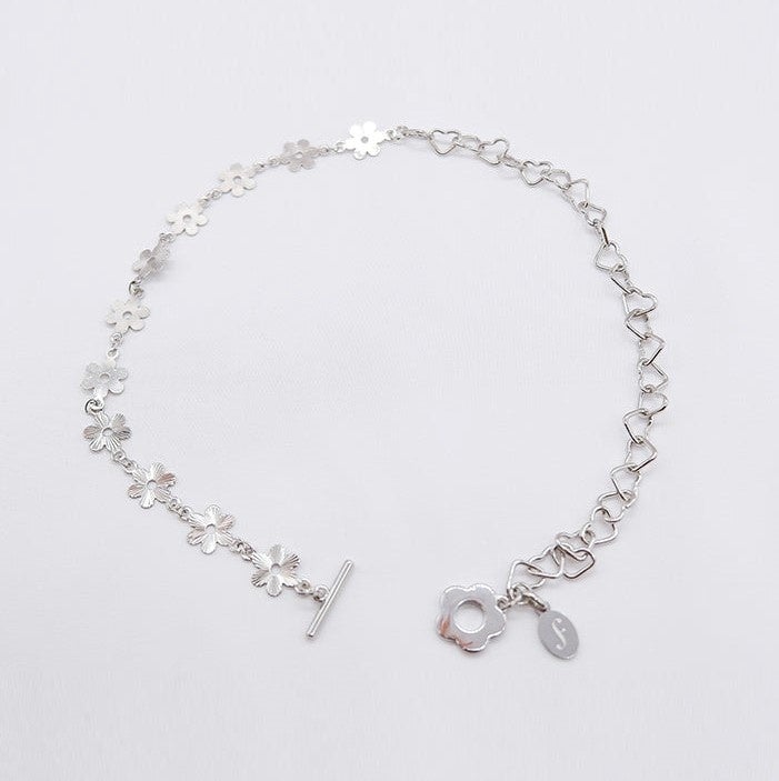 お花とハートの組み合わせが特徴的なチェーンが、アイコニックなデザインでありながらFoundry Mewsの独自のスタイルも感じられる魅力的なデザインのネックレスです。