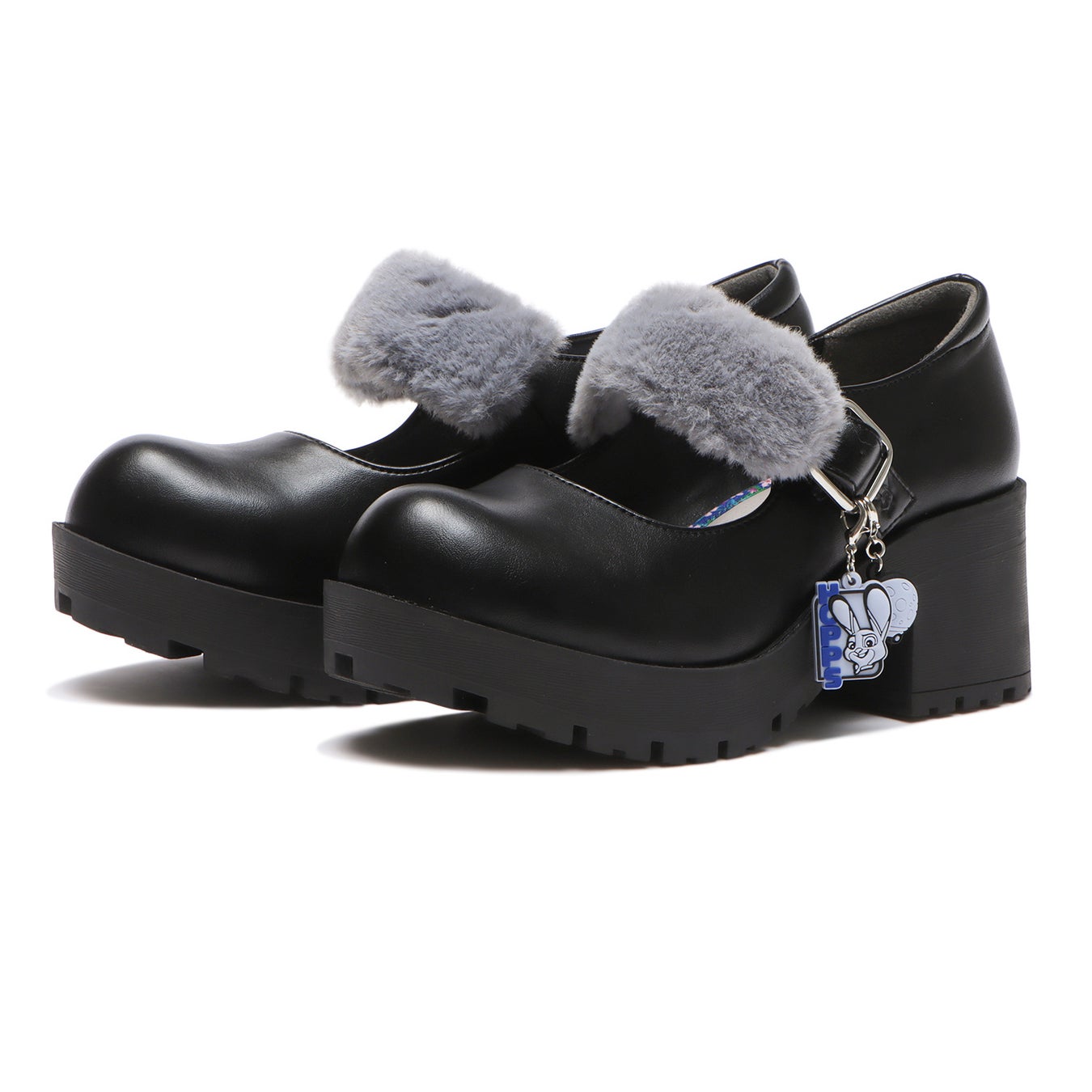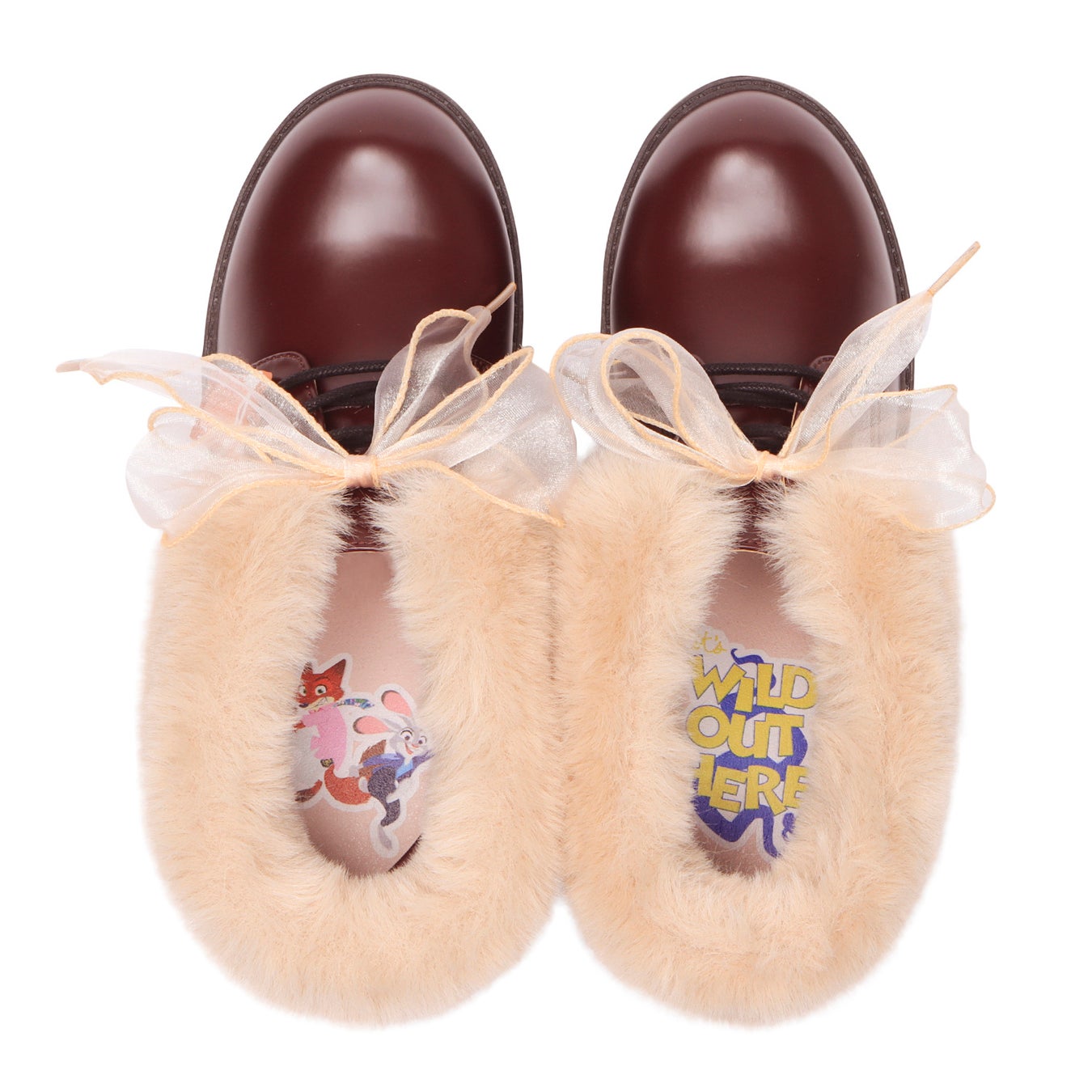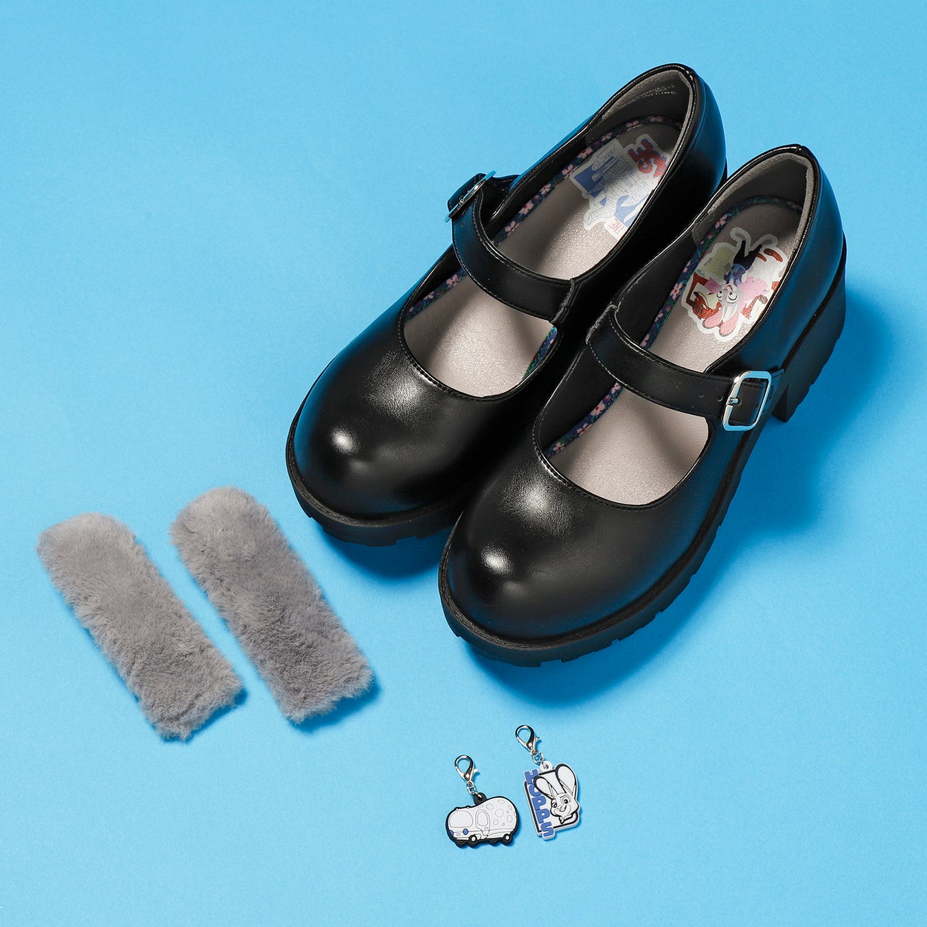 本コレクションシューズは、足もとに「ニック」と「ジュディ」の“前に進む力”を持たせるような、ふわりと揺れるファーとチャームが印象的な2種をご用意いたします。それぞれのインソールには「ニック&ジュディ」のコンビを描いた特別なプリントを採用しています。また、取り外し可能なファーやチャームは、その日の気分やファッションに合わせてお楽しみいただけます。