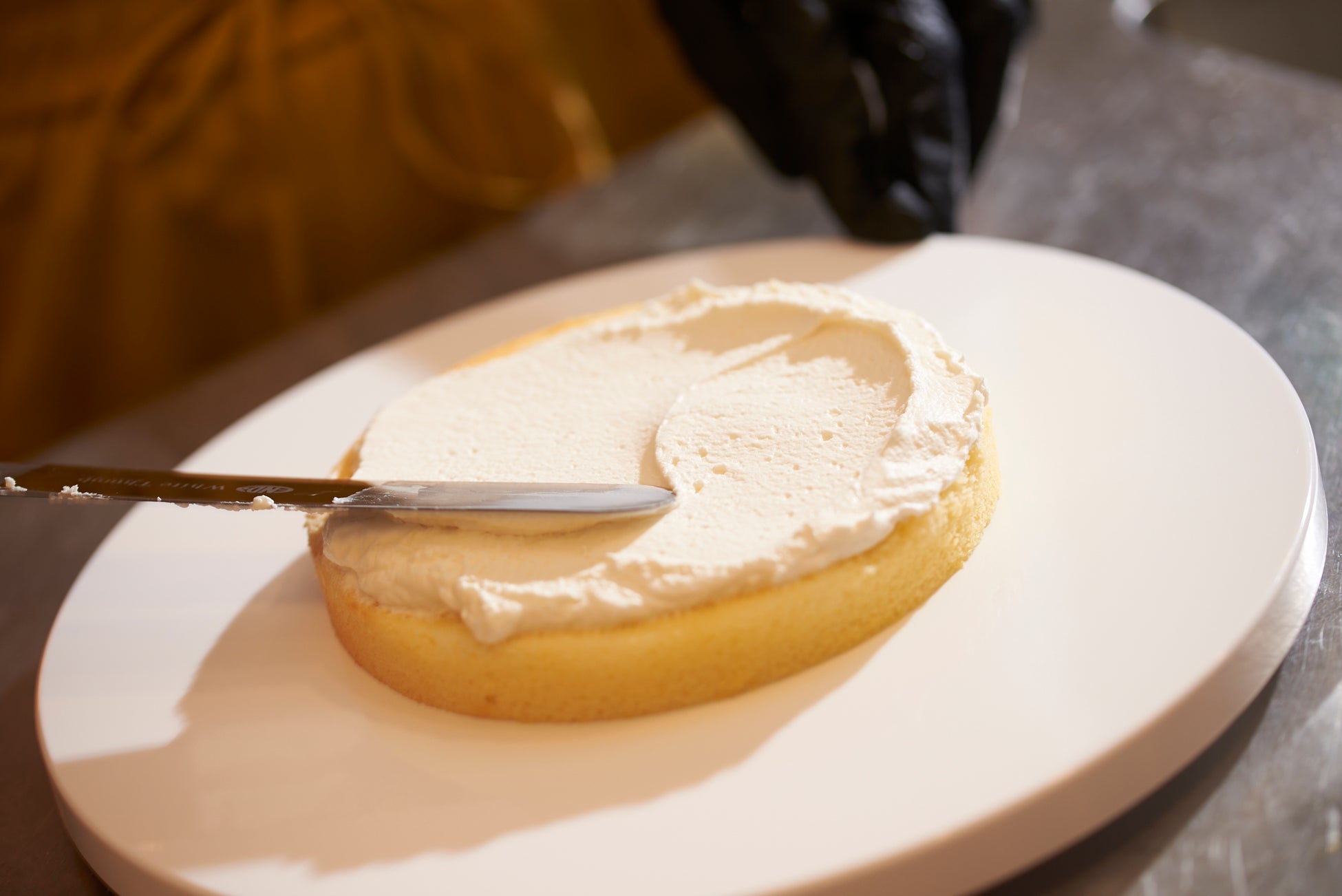卵・乳成分・小麦を含む食材を使用しないアレルギー対応専用ラインでは、高度な技術力を持つ、㈱タカキベーカリーの技術指導のもと、ブランド米として名高い新潟県十日町産魚沼コシヒカリの米粉と豆乳クリームを使ったケーキを製造しています。
