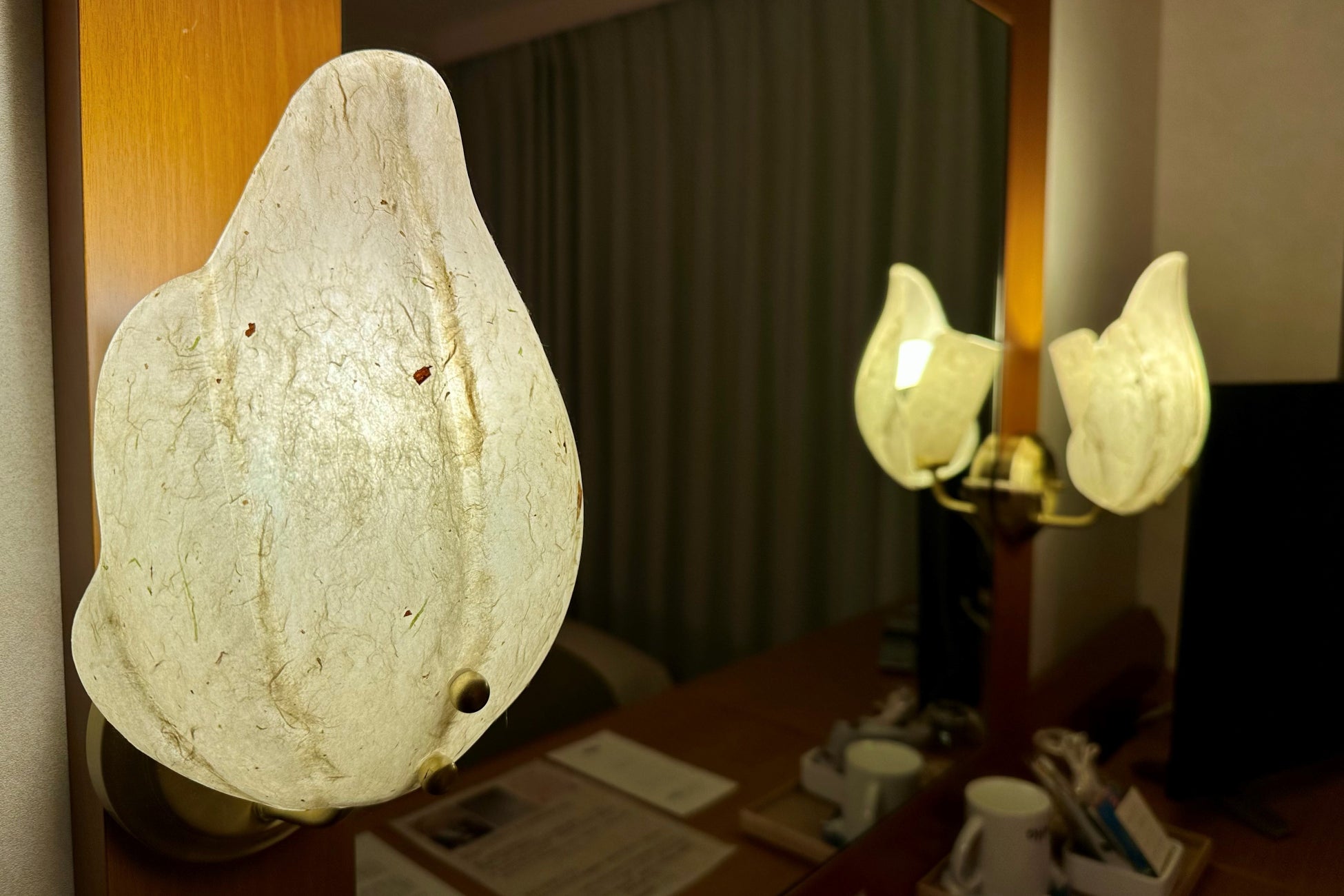 なかでも着目したのは「睡眠」と「空間」です。睡眠には、いわきで伐採された杉のチップを使用した「眠り杉枕」をホテル業界初導入。特に快適性にこだわり、完成までに3年を費やした枕で、2019年現在、枕として間伐材マークと木づかいサイクルマークの製品認証を取得した日本で唯一の製品です。リラックス効果を期待できる香り成分「セドロール」により、森林浴をするかのような心地よい眠りをサポートします。少し硬めをお好みの方に最適です。空間には、400年以上の歴史をもついわきの伝統工芸品「遠野和紙」をあしらったブラケットをデスクライトに採用。自然素材の和紙が持つやわらかさや美しさで、心休まる空間をご体感ください。