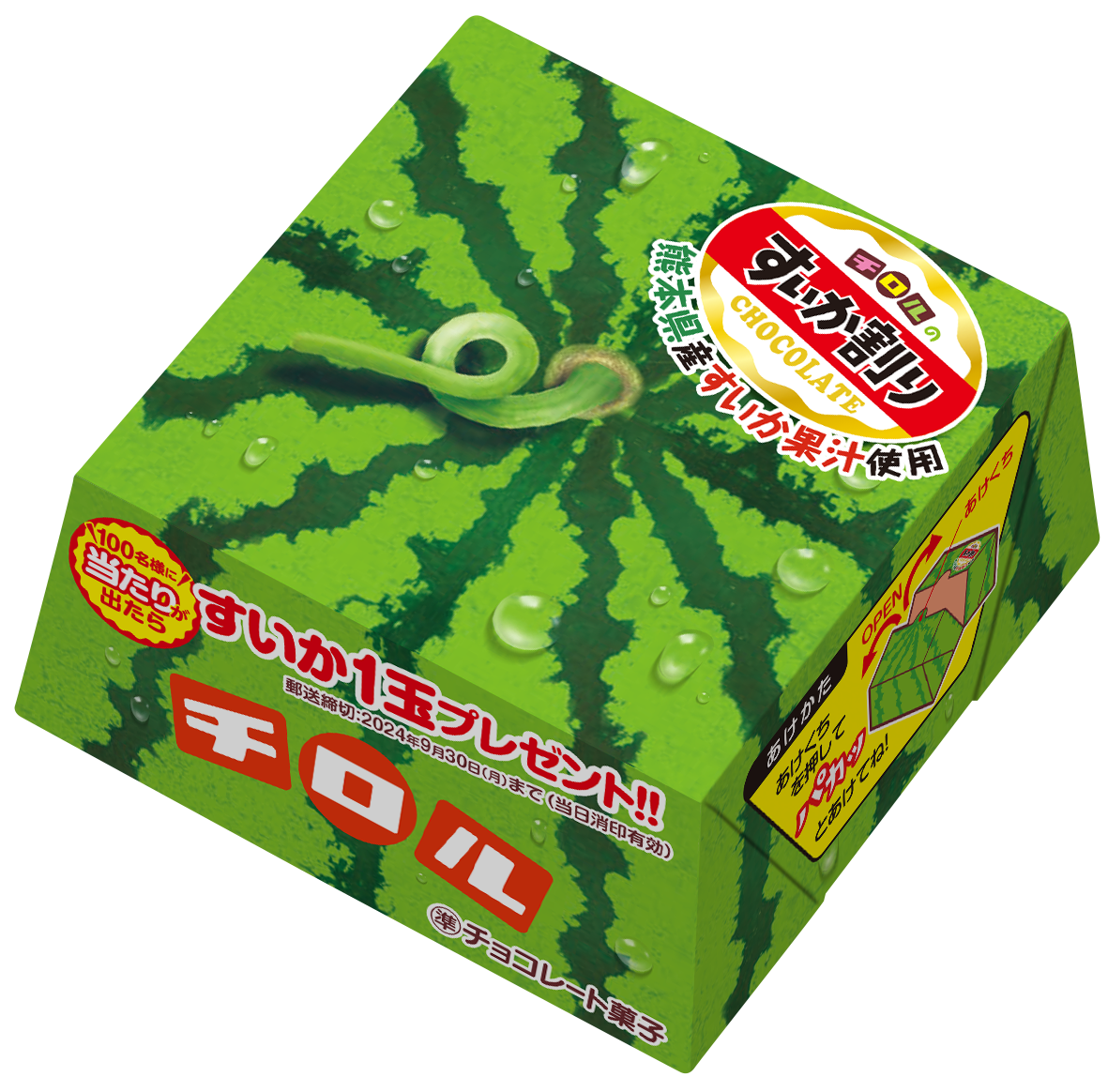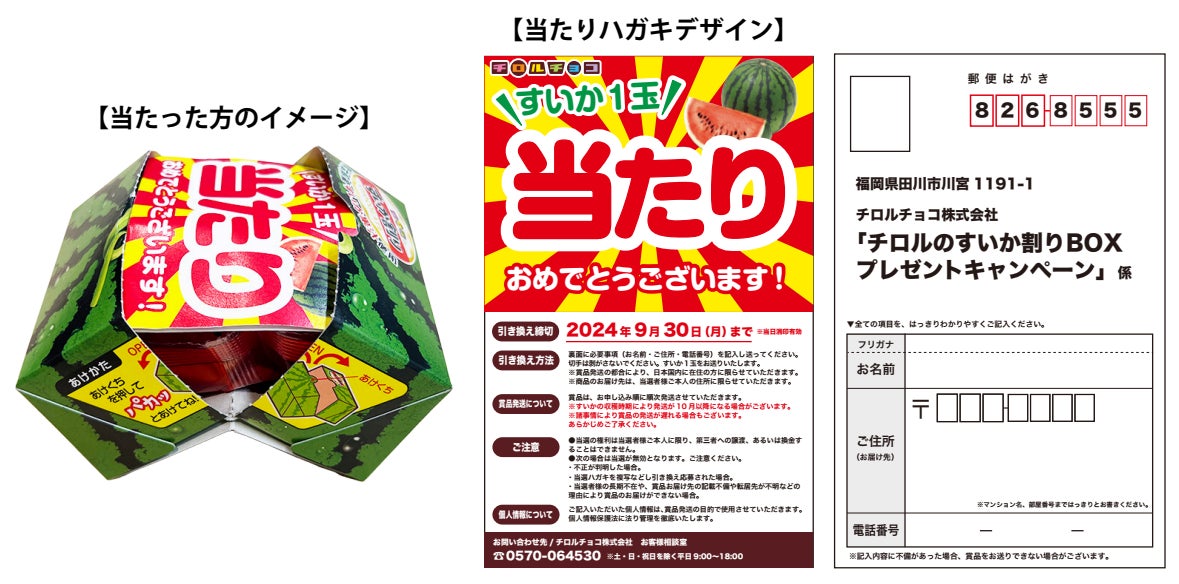 BOXの中に「当たりハガキ」が入っていた方に、熊本県産のすいか1玉をプレゼントするワクワクのキャンペーン付き。遊び心満載の楽しい仕掛けを是非体験してください。