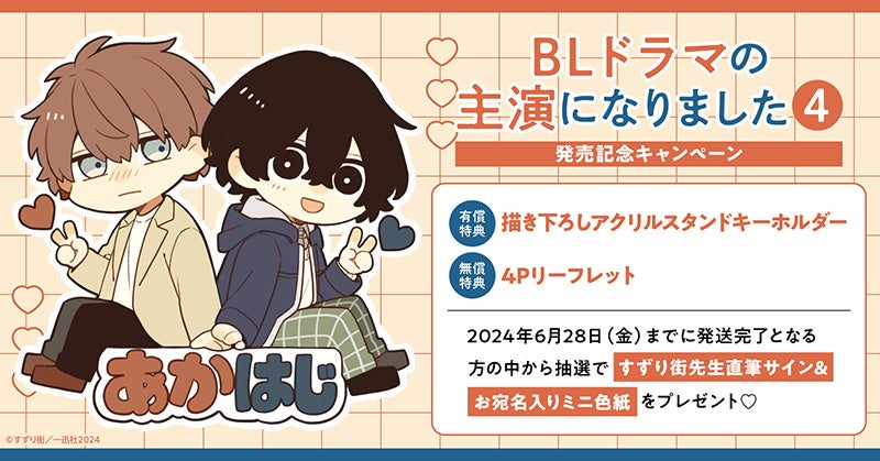 ホーリンラブブックスでは、すずり街先生最新コミックス『BLドラマの主演になりました(4)』発売を記念して豪華キャンペーンを実施いたします!