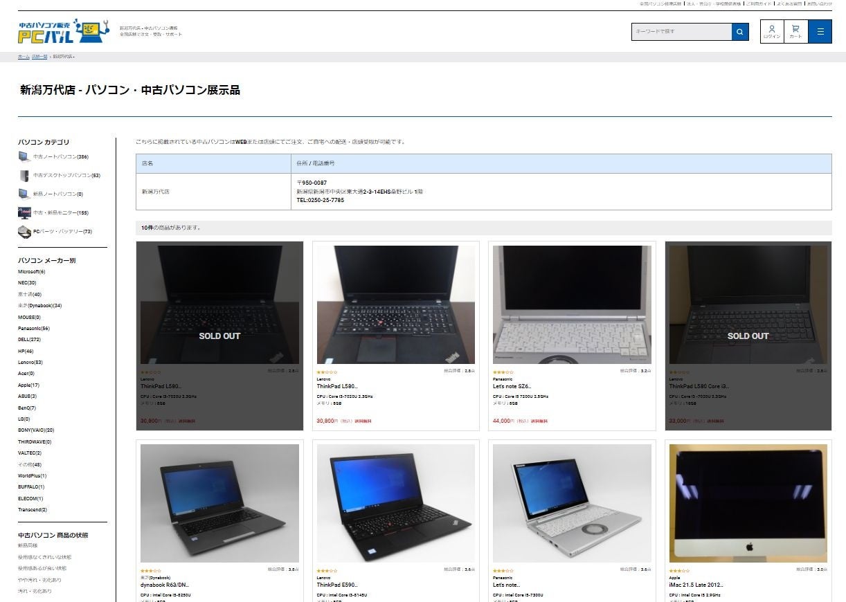 PCバル新潟万代店 中古パソコン WEBセール会場