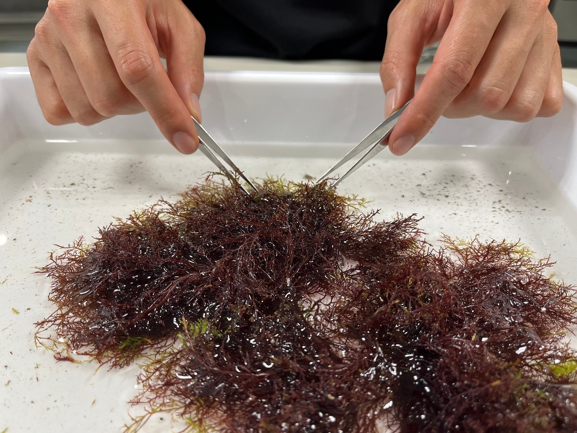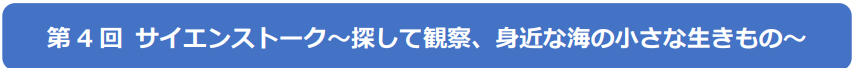 海にある岩や海藻などの基質からソーティングして小さな生きものを観察します。ソーティングとは、「生きものの拾い出し」のことで、海にどんな生きものがいるのか、その小さな生きものはどんな特徴なのか、顕微鏡で観察をしていただきます。