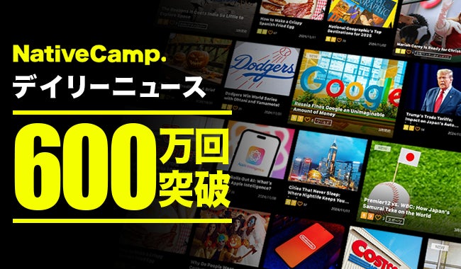 ネイティブスピーカーと回数無制限のオンライン英会話サービス「ネイティブキャンプ英会話」を展開する株式会社ネイティブキャンプ(東京都渋谷区 代表取締役:谷川国洋)は、この度、最新ニュースを通じて実践的な英語力を身につけられる一番人気のオリジナル教材「デイリーニュース」が累計600万レッスンを達成したことをお知らせいたします。