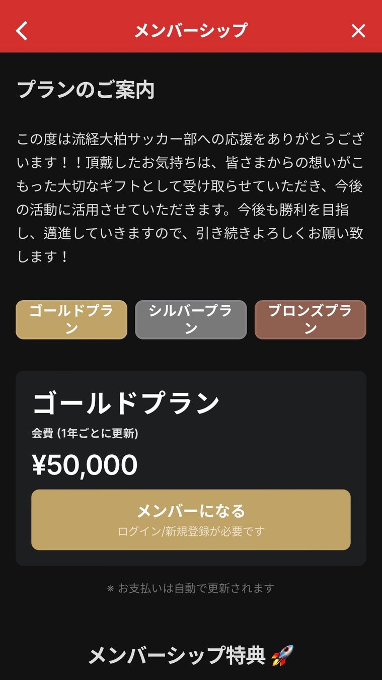 メンバーシップ機能からファンクラブ会員になって頂くと、チームから特別なグッズをお届けします!