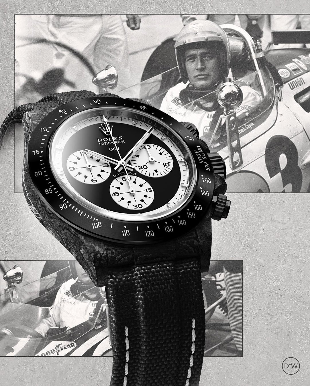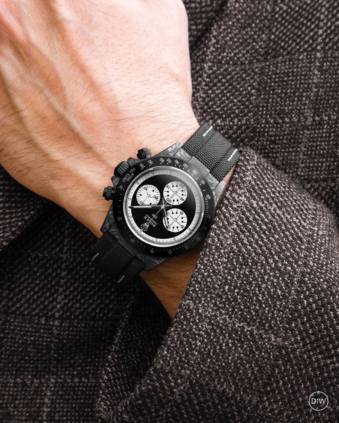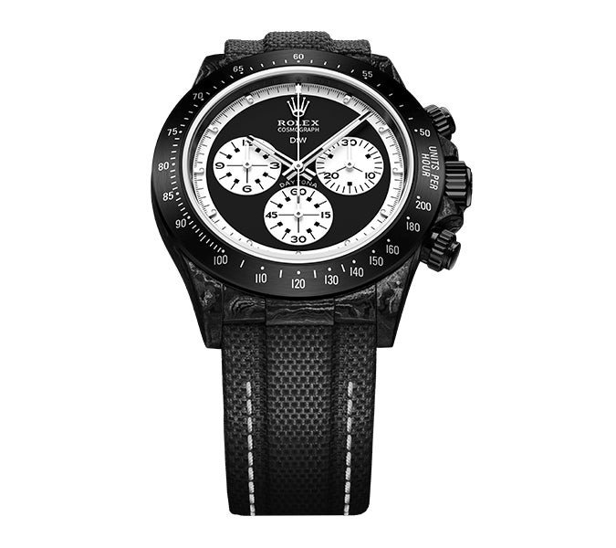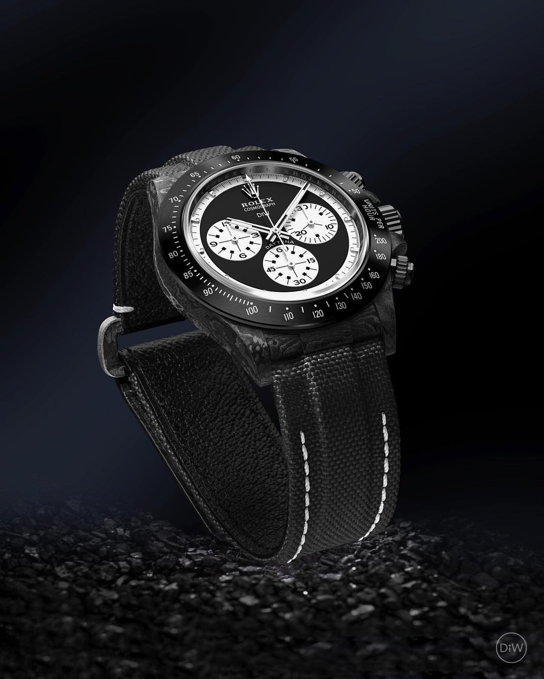 時計のカスタムを得意とする「DIW」から、希少性の高さから「ロレックスの『幻のデイトナ』」とも称される『ポール・ニューマンモデル』にインスパイアされたタイムピースが登場。ポール・ニューマンモデル特有の「エキゾチックダイヤル」の要素を取り入れつつ、カーボンファイバー製のボディとブラックのセラミックベゼルを採用し、クラシックとモダンが融合した独自のデザインに仕上げられています。