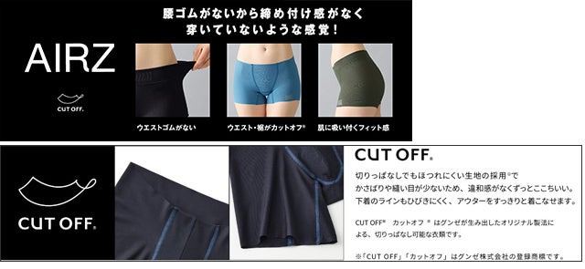 独自技術「CUT OFF®」を搭載し、腰ゴムがなく、ウエストと裾を切りっぱなしにした新スタイルのアンダーウェア「AIRZ(エアーズ)」。(価格 1,430円)