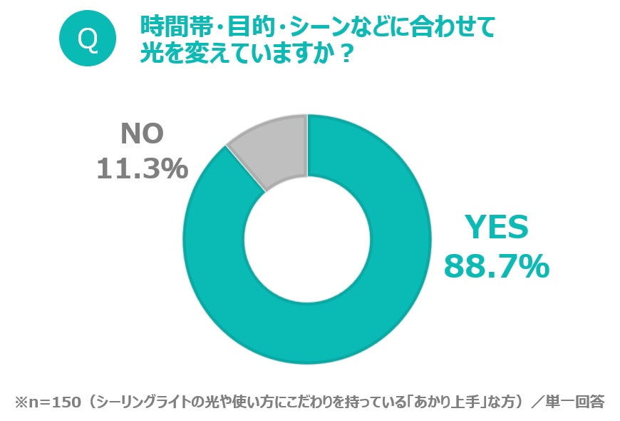 ◆「あかり上手」な人の8割以上が「時間帯・目的・シーンなどに合わせて光を変えている」。