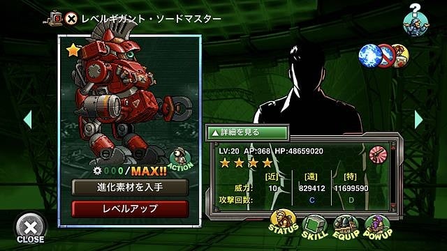 モーデン軍の「レベルギガント」開発チームが、ロマンだけを追い求めて秘密裏に開発した機体。今回上層部に見つかってしまい、出撃することになった。機動性能と火力は最高レベルだが、操作が複雑過ぎるので開発チームの操縦班3人が搭乗している。