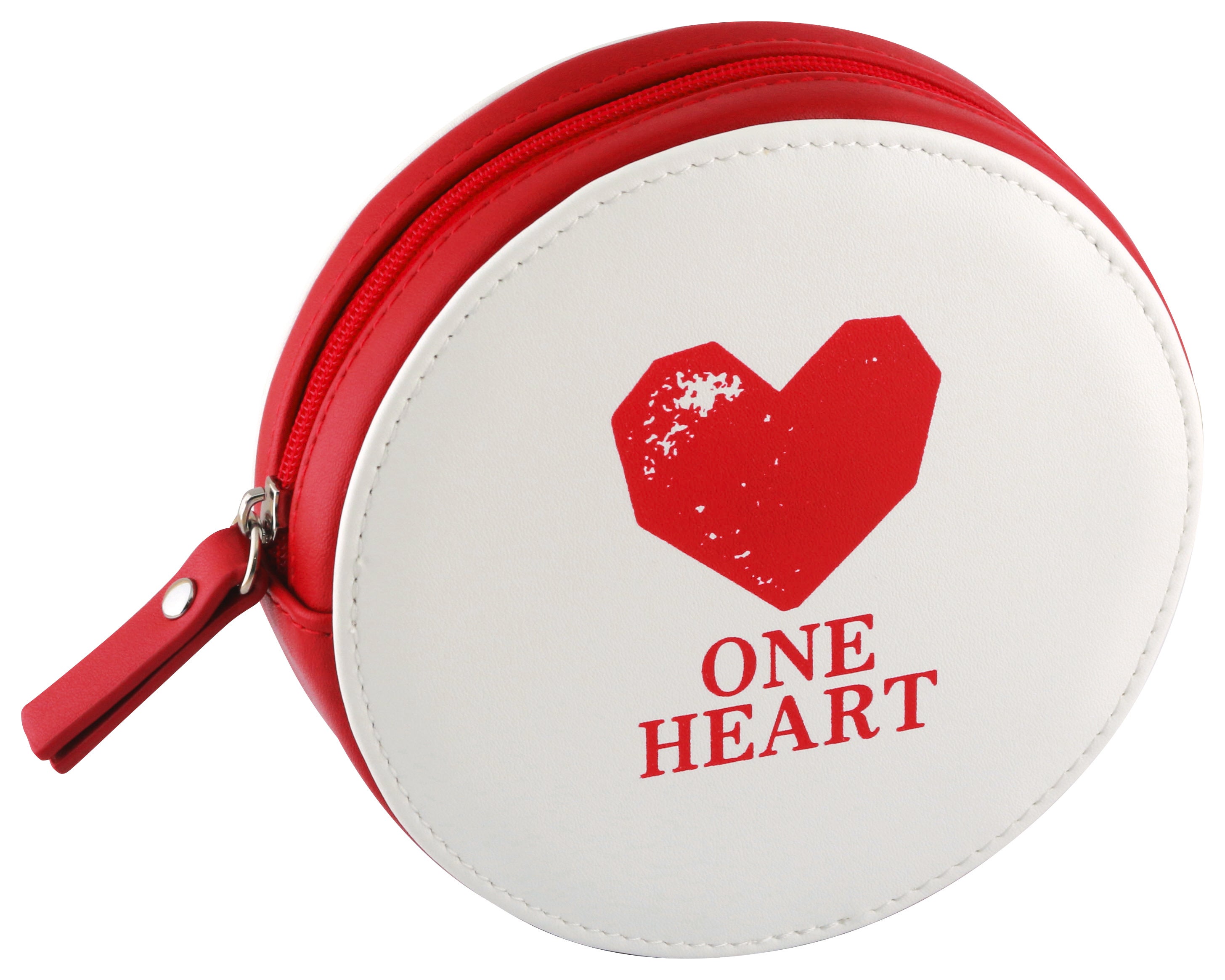昨年夏の大会のキャッチフレーズ「心をひとつに夢の先まで!」にちなみ、ONE HEARTの文字をあしらったラウンドポーチ。ボールの縫い目をハートで表現したデザインです。