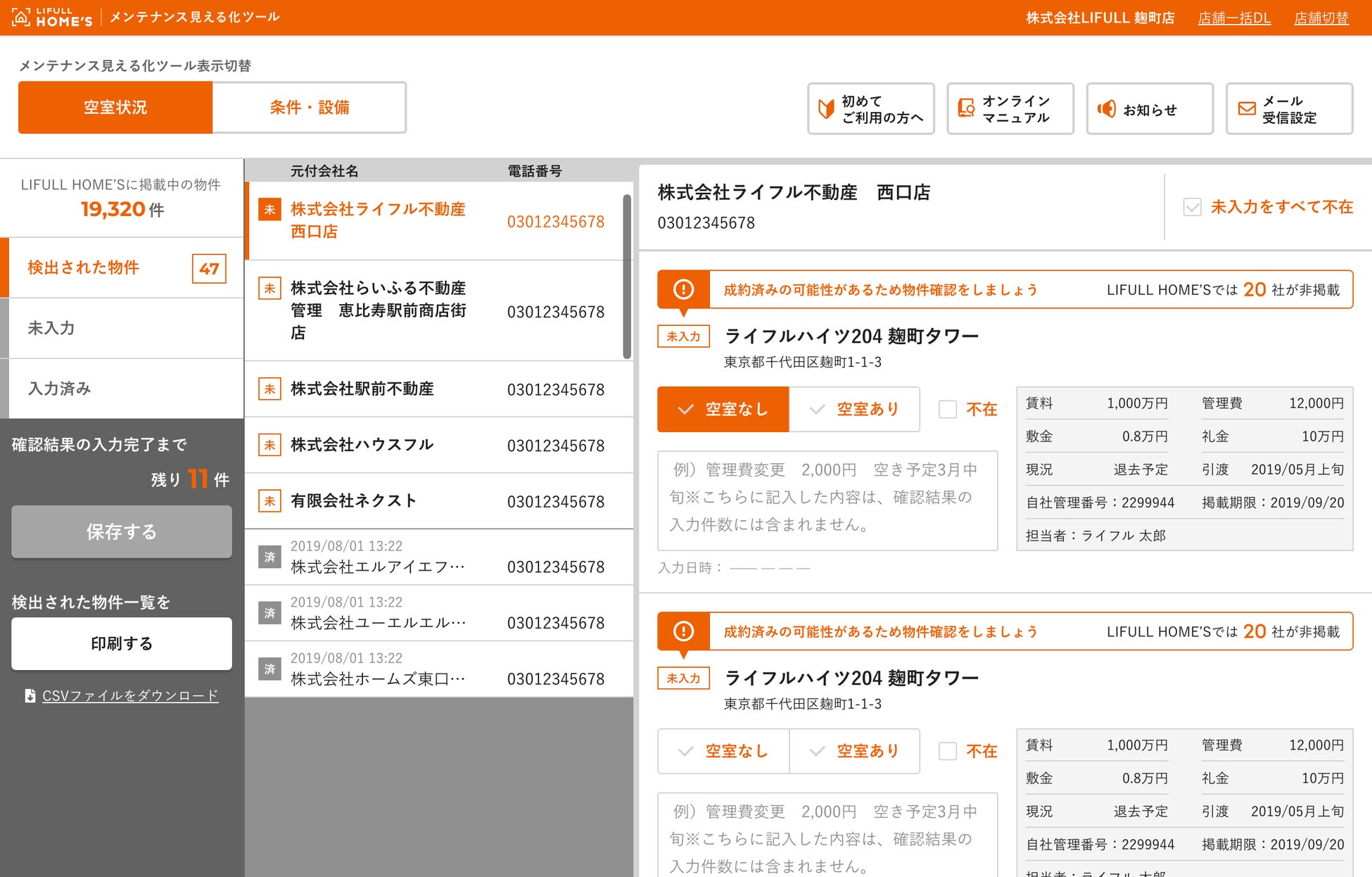 LIFULL HOME'Sを利用する方へ、精度と鮮度が高い物件情報を提供することに加え、不動産会社の煩雑な業務を効率化させることを目的に、2019年12月に「メンテナンス見える化ツール」の提供を開始しました。
